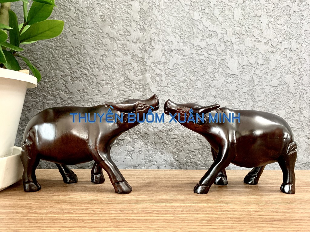 **CẶP TƯỢNG TRÂU GỖ TRANG TRÍ PHONG THUỶ | GỖ TRÀM NGUYÊN KHỐI | SIZE NHỎ