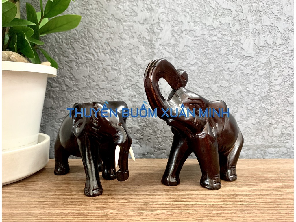 **CẶP TƯỢNG VOI GỖ TRANG TRÍ PHONG THUỶ L1 | GỖ TRÀM NGUYÊN KHỐI | SIZE NHÍ
