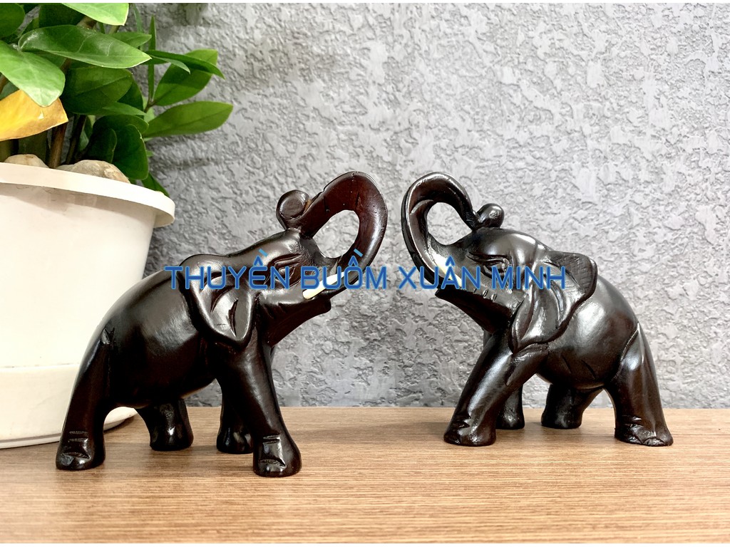 **CẶP TƯỢNG VOI GỖ TRANG TRÍ PHONG THUỶ L2 | GỖ TRÀM NGUYÊN KHỐI | SIZE NHÍ