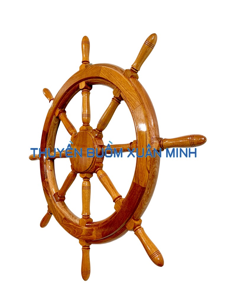 Bánh Lái tàu biểu trưng cho sự định hướng, đảm bảo sự ổn định và vận hành một cách thông suốt. Sản phẩm như hình, được thủ công từ gỗ Căm Xe tự nhiên 100% và được sơn bóng PU giúp giữ tone màu gỗ tự nhiên lâu bền