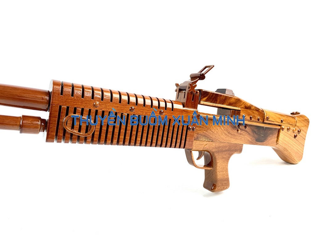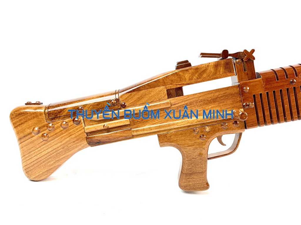 _ Mô hình được thiết kế tỉ mỉ, chắc chắn và được chạm khắc tinh xảo, bắt mắt người xem với chất liệu gỗ tự nhiên cùng với lớp sơn bóng PU không lo mối mọt trong thời gian dài. Hơn nữa các chi tiết như nòng súng, ống nhắm, ruồi nhắm, băng đạn, tay cầm, báng súng cũng như các trang trí khác.. được thiết kế phù hợp với tỷ lệ mô hình súng gỗ này.