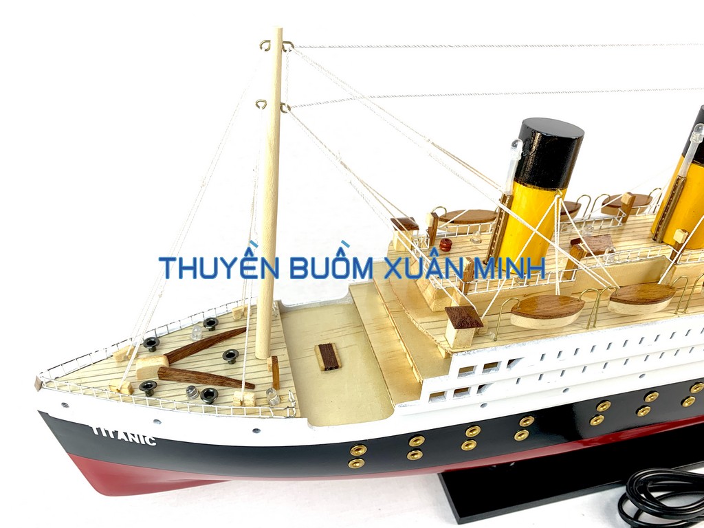 Con tàu bắt đầu được xây dựng vào năm 1909 và được hạ thuỷ vào năm 1912. TITANIC là một con tàu lớn, hiện đại và sang trọng nhất vào thời điểm đó. Sản phẩm như hình, được thủ công từ gỗ Xoan đào 100% và được sơn tone màu trắng-đỏ-đen. Đặc biệt, sản phẩm được thiết kế thêm bộ đèn LED trên mặt sàn thuyền.