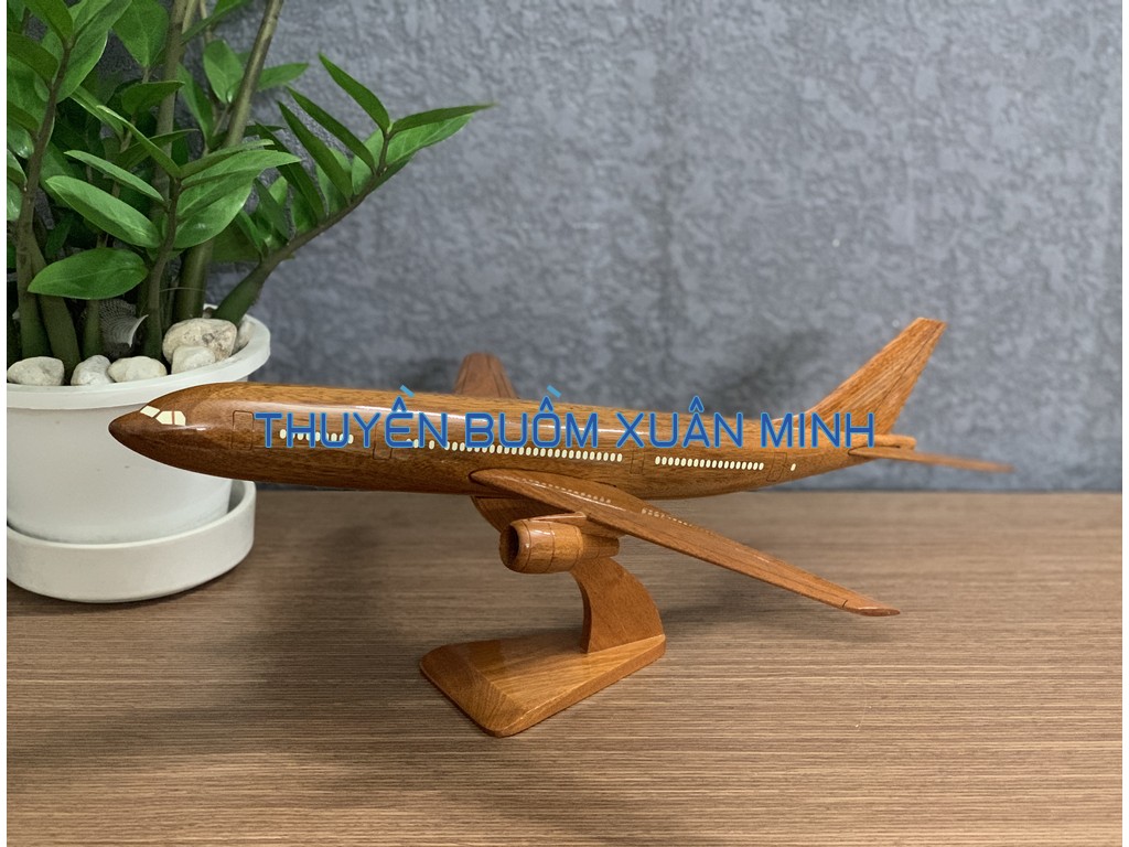 Airbus A300 là một mẫu máy bay thân rộng có tầm bay trung bình và ngắn, được xuất xưởng năm 1972. Sản phẩm như hình, được thủ công từ gỗ Căm Xe 100% và được sơn bóng PU giúp giữ tone màu gỗ tự nhiên lâu bền