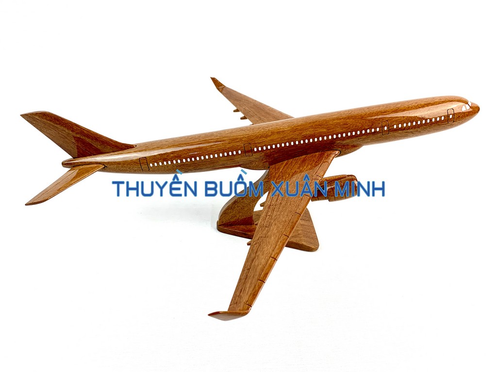 Airbus A330 là một mẫu máy bay dân dụng chở khách thương mại, thân rộng, động cơ đôi, một tầng, hai lối đi có tầm bay từ trung bình đến xa. Sản phẩm như hình, được thủ công từ gỗ Căm Xe 100% và được sơn bóng PU giúp giữ tone màu gỗ tự nhiên lâu bền