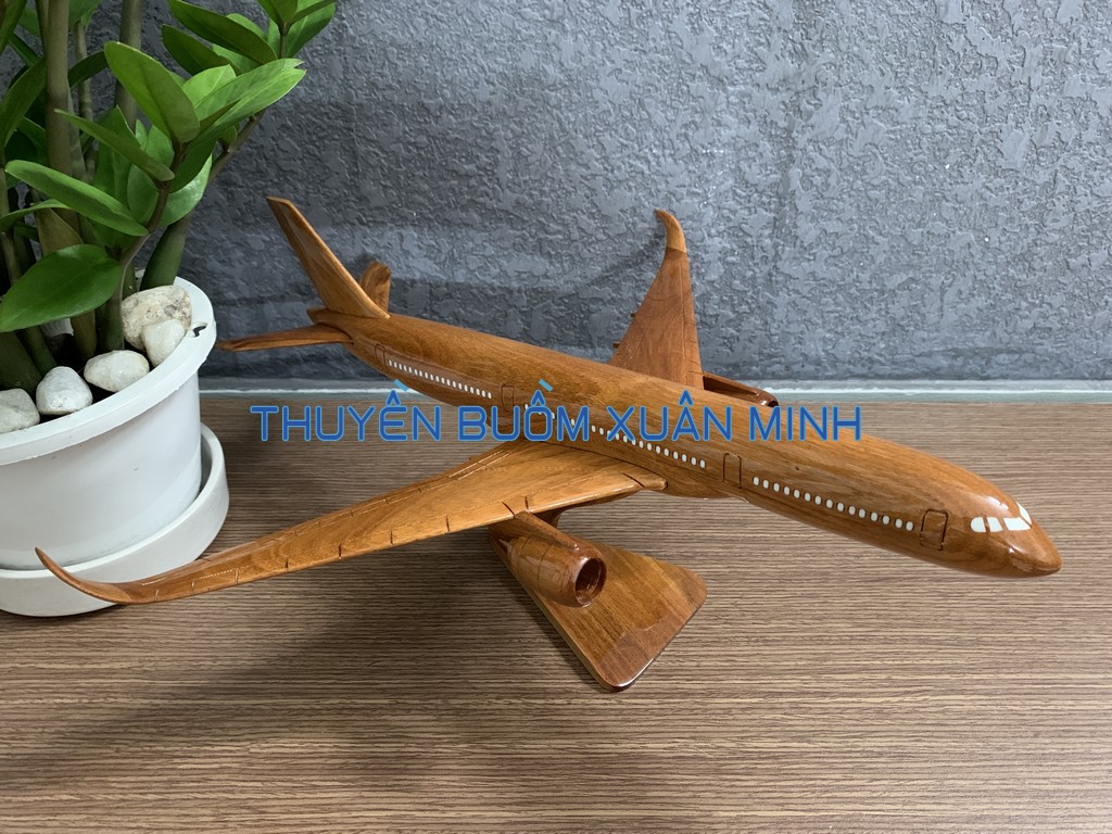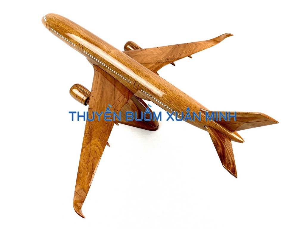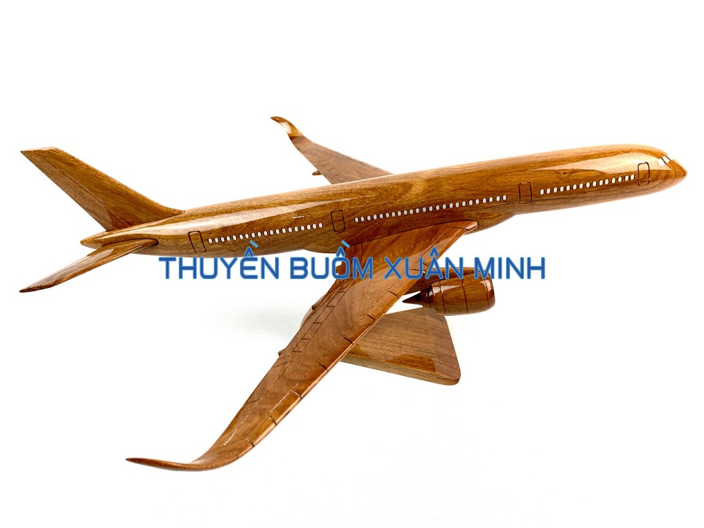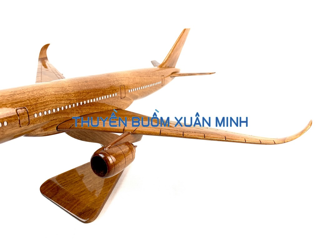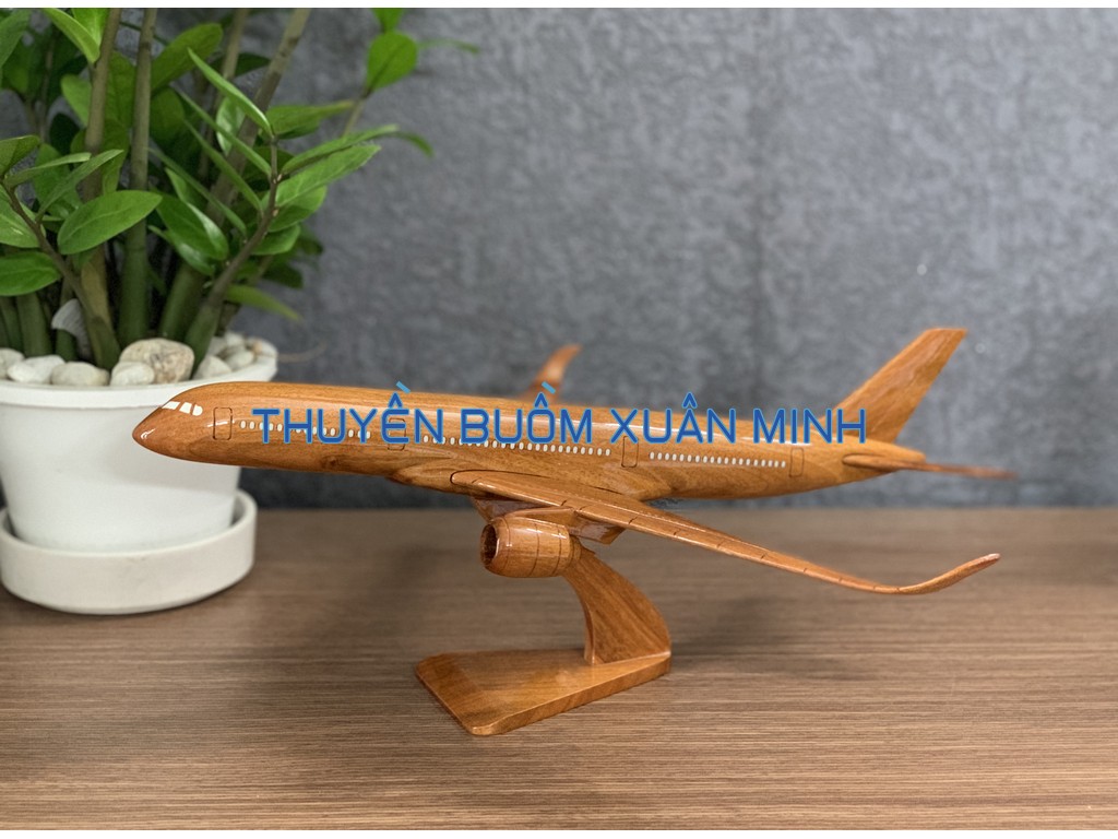 Airbus A350 XWB là dòng máy bay chở khách thân rộng, động cơ đôi, một tầng, hai lối đi được phát triển bởi Airbus. A350 là máy bay Airbus đầu tiên sử dụng vật liệu sợi carbon. Sản phẩm như hình, được thủ công từ gỗ Căm Xe 100% và được sơn bóng PU giúp giữ tone màu gỗ tự nhiên lâu bền