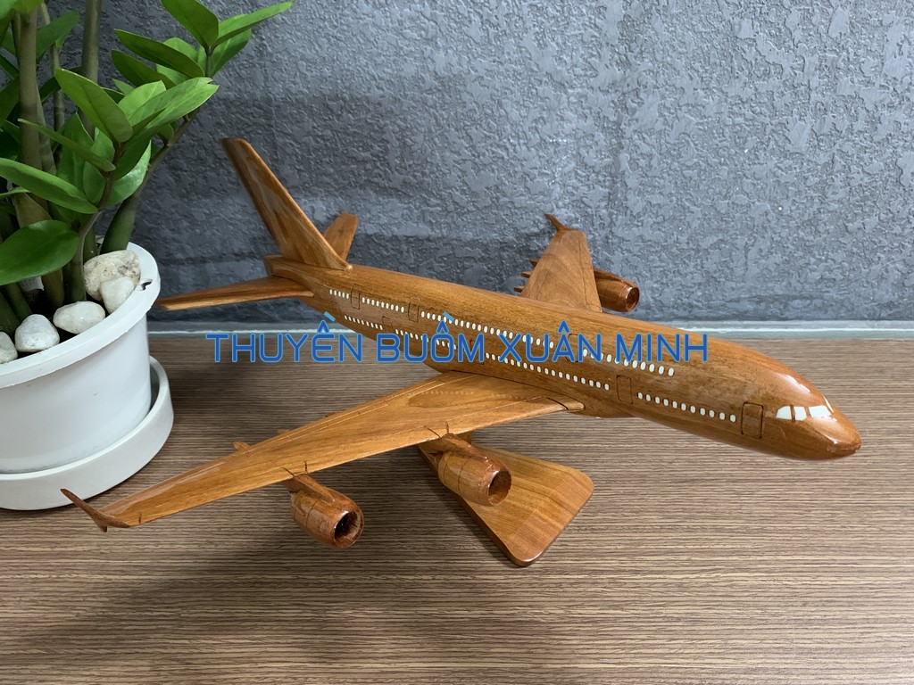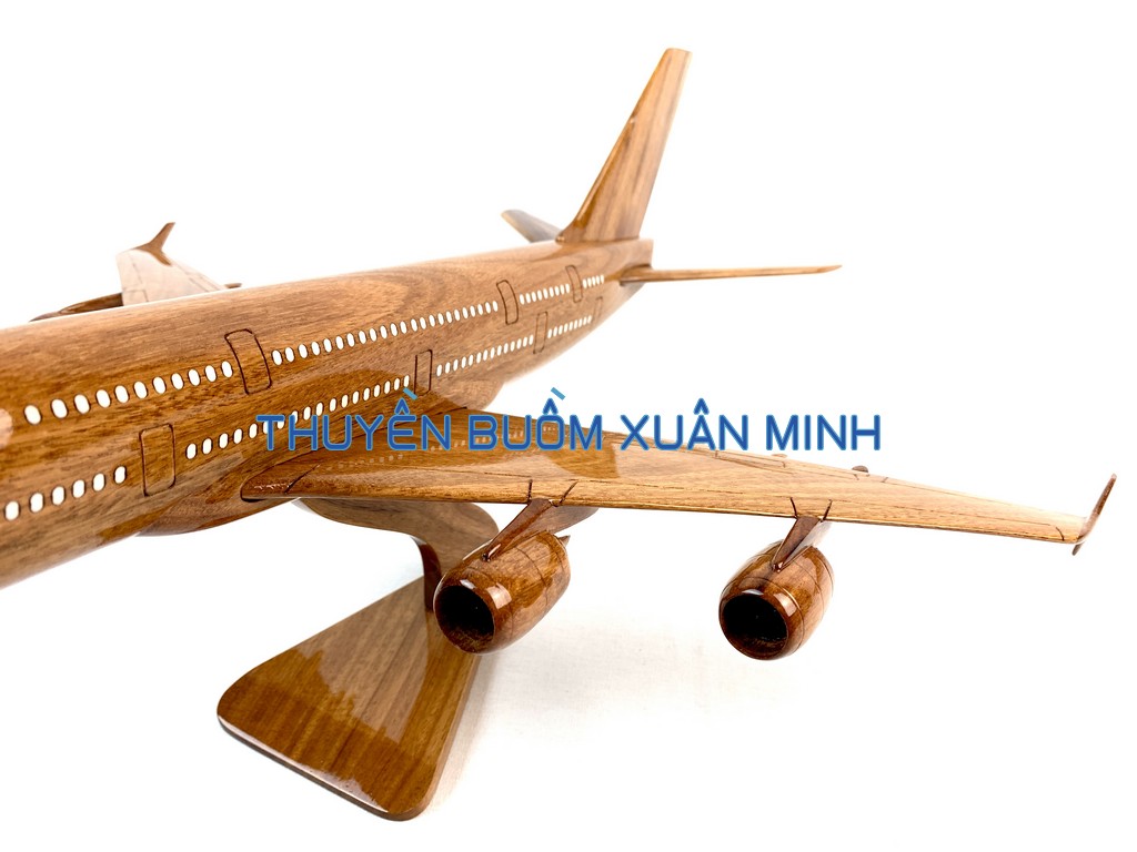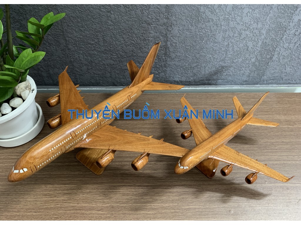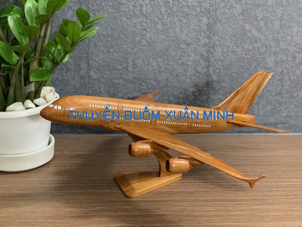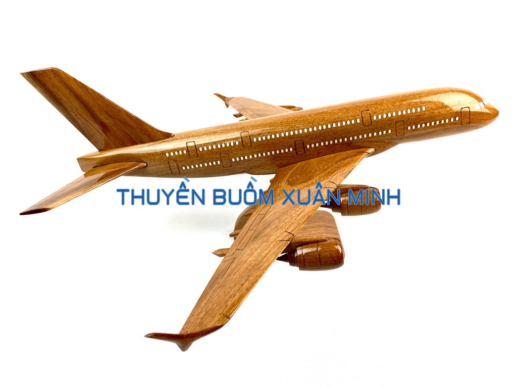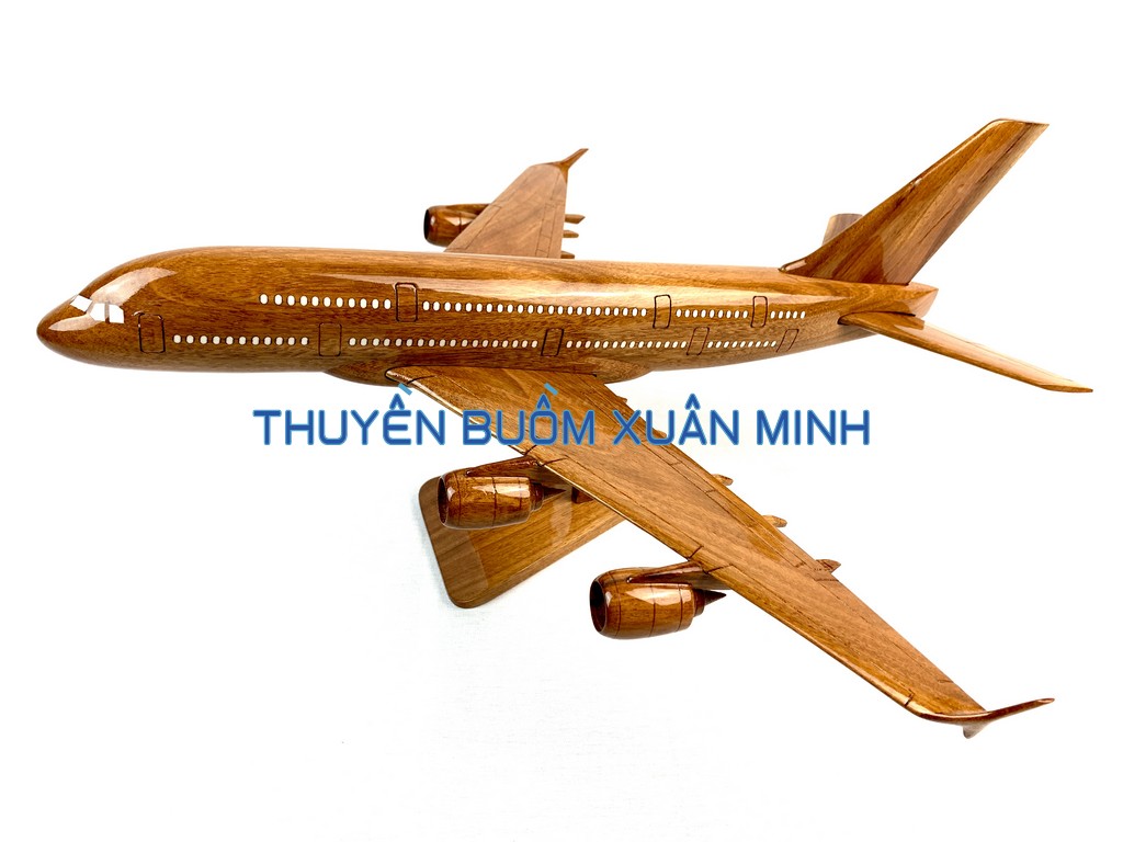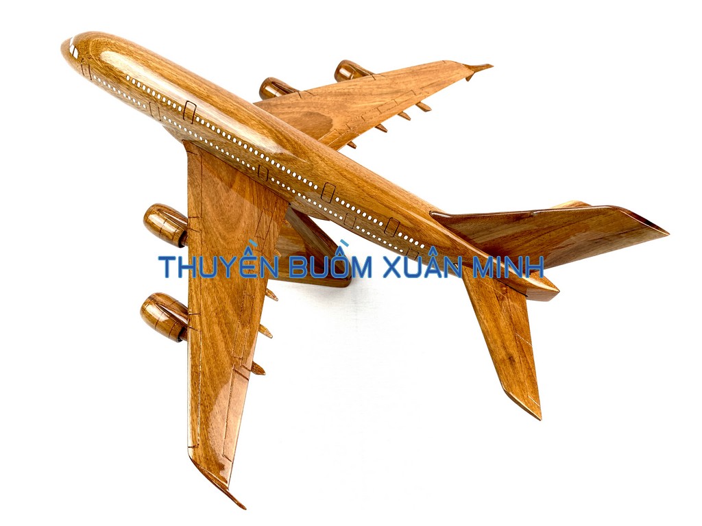 A380 là chiếc máy bay thân rộng, hai lối đi, hai tầng, bốn động cơ đầu tiên trên thế giới và lớn nhất tính đến thời điểm hiện tại. Sản phẩm như hình, được thủ công từ gỗ Căm Xe 100% và được sơn bóng PU giúp giữ tone màu gỗ tự nhiên lâu bền