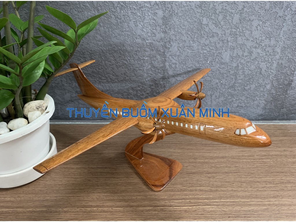 ATR 72 là một máy bay chở khách sử dụng hai động cơ turboprop hoạt động trên những tuyến đường ngắn, được sản xuất tại Pháp bởi ATR. Sản phẩm như hình, được thủ công từ gỗ Căm xe 100% và được sơn bóng PU giúp giữ tone màu gỗ tự nhiên lâu bền