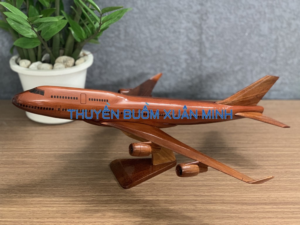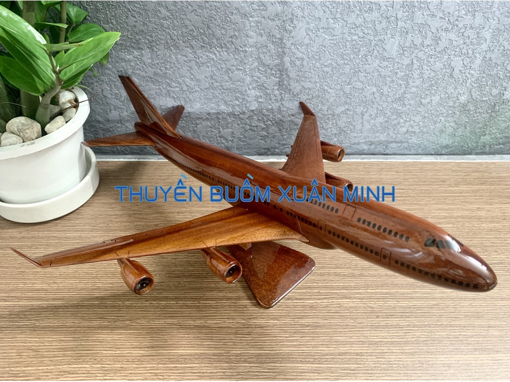 Boeing 747 được gọi với biệt danh "Jumbo Jet", là một trong những loại máy bay dễ nhận biết và là máy bay phản lực dân dụng thương mại cỡ lớn thân rộng đầu tiên được sản xuất . Sản phẩm như hình, được thủ công từ gỗ Tràm Keo 100% và được sơn bóng PU giúp giữ màu gỗ tự nhiên lâu bền