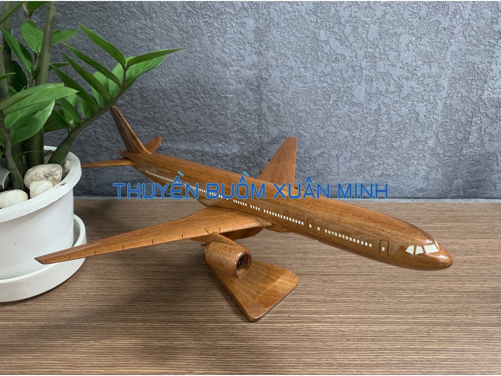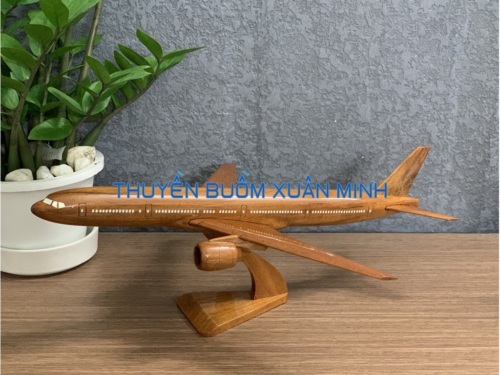 Phi cơ Boeing 777 là một dòng máy bay hai động cơ thân rộng của Hoa Kỳ được công ty Commercial Airplanes Division thuộc hãng Boeing chế tạo. Sản phẩm như hình, được thủ công từ gỗ Căm Xe 100% và được sơn bóng PU giúp giữ tone màu gỗ tự nhiên lâu bền