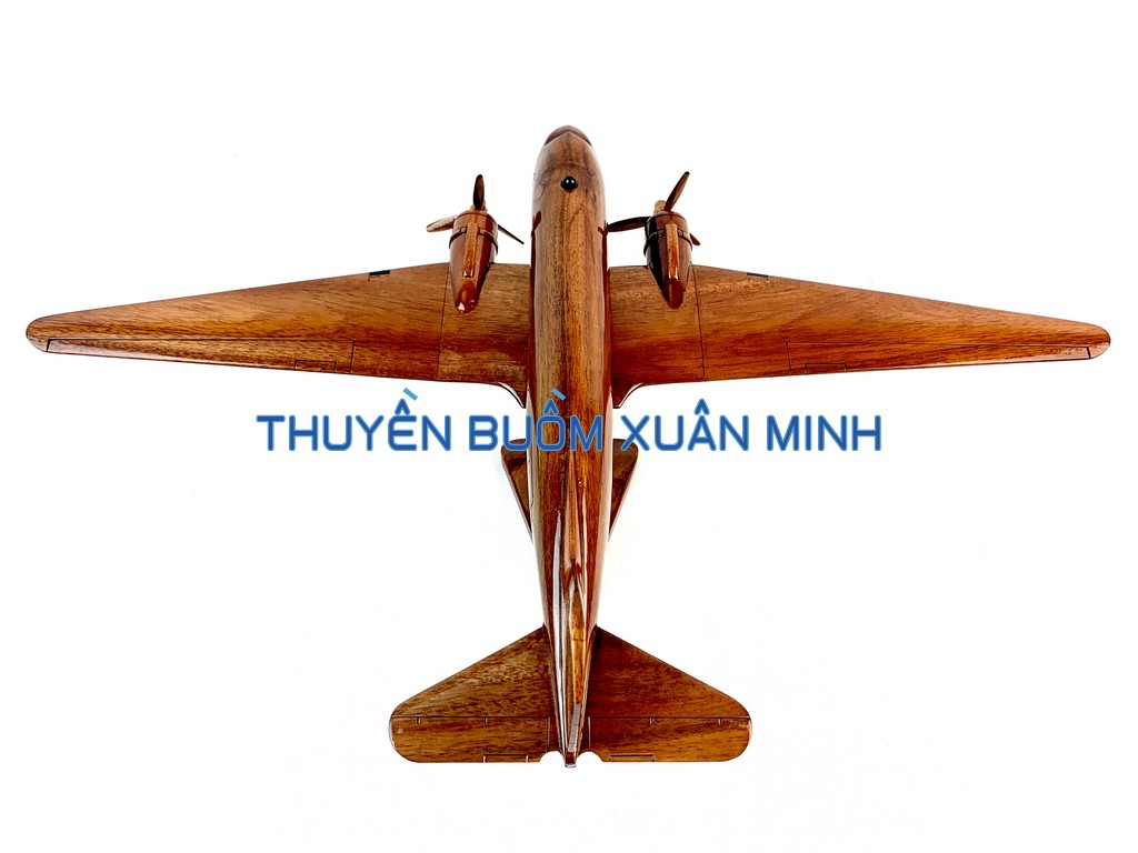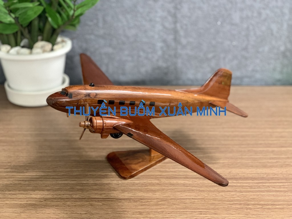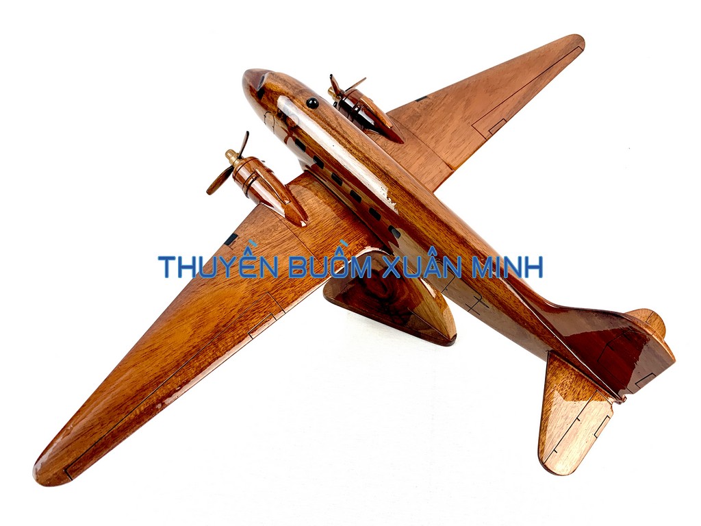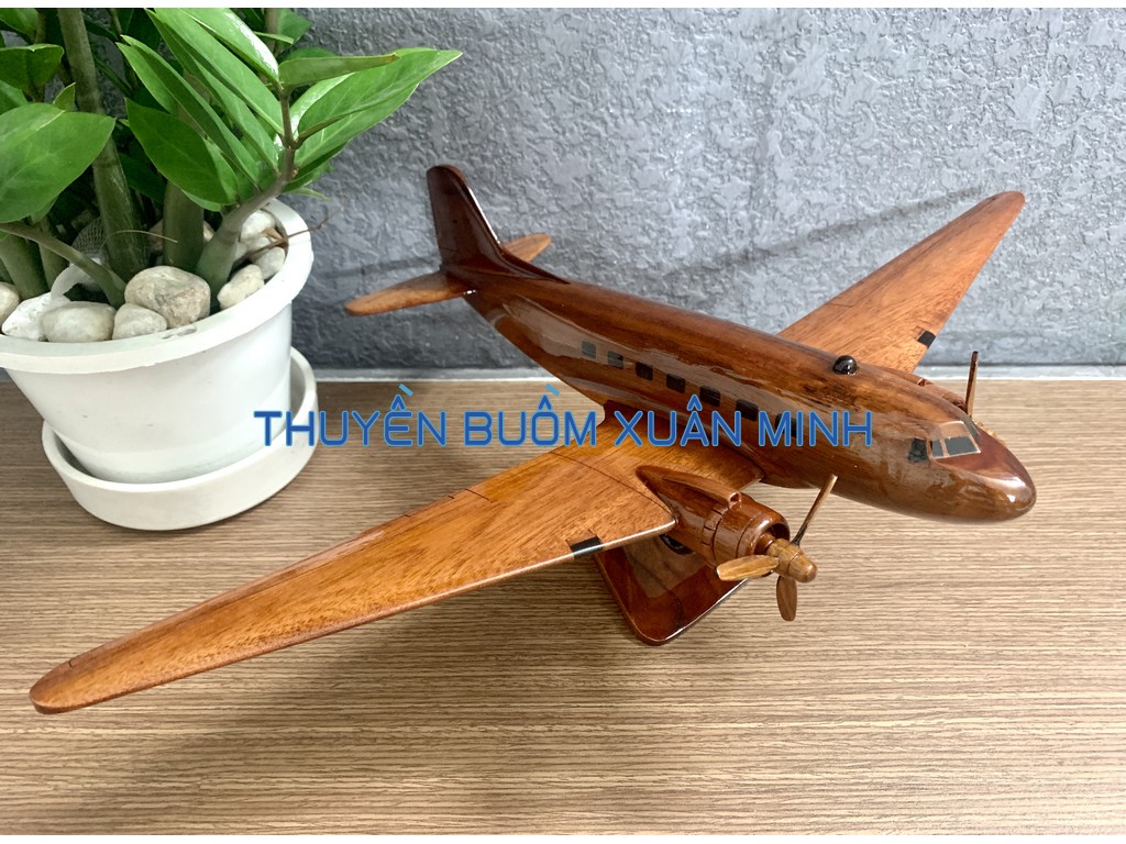 Douglas DC-3 là một loại máy bay chở khách cánh quạt của Hoa Kỳ, đây là một loại máy bay có tầm bay và vận tốc bay cách mạng trong thập niên 1930 và 1940. Sản phẩm như hình, được thủ công từ gỗ Tràm Keo 100% và được sơn bóng PU giúp giữ màu gỗ tự nhiên lâu bền