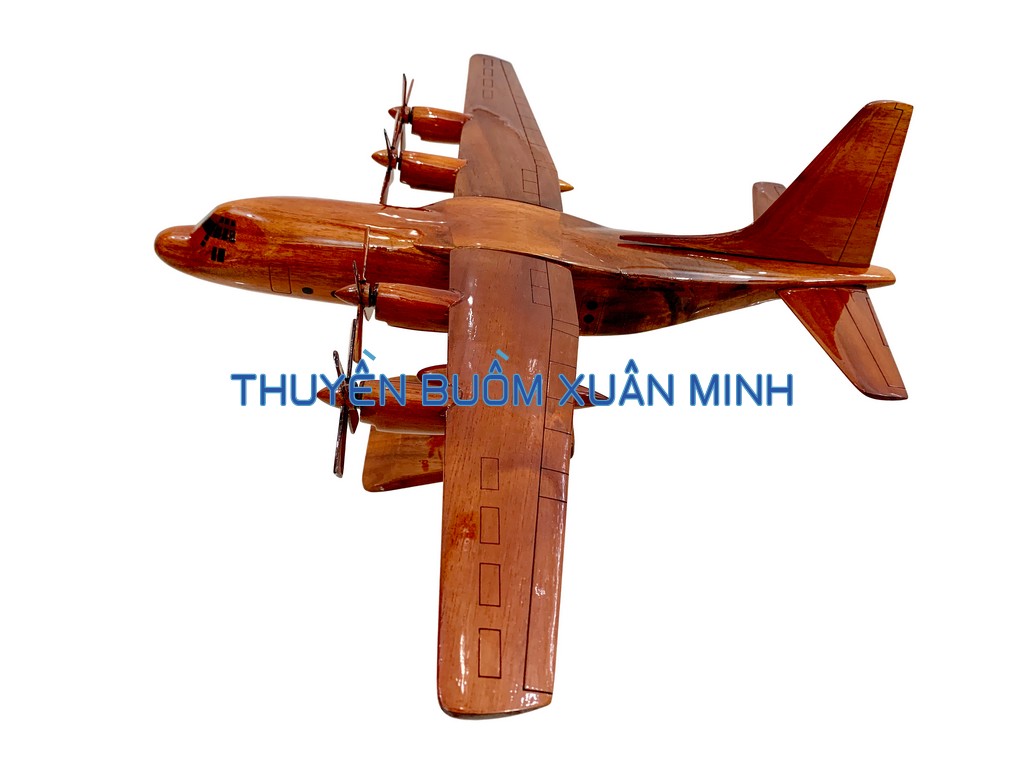 Lockheed C-130 Hercules là một máy bay vận tải hạng trung bốn động cơ tua bin cánh quạt và là loại máy bay không vận chiến lược của nhiều lực lượng quân sự trên thế giới. Sản phẩm như hình, được thủ công từ gỗ Tràm 100% và được sơn bóng PU giúp giữ tone màu gỗ tự nhiên lâu bền