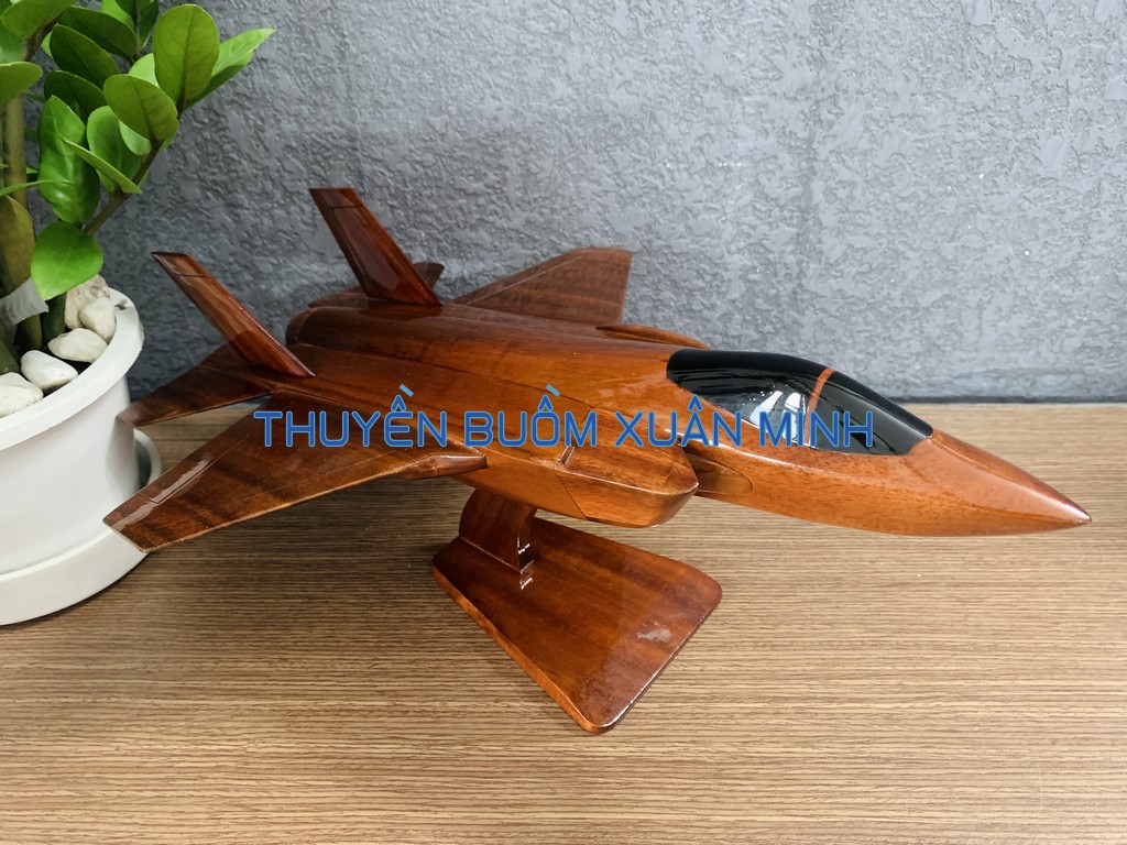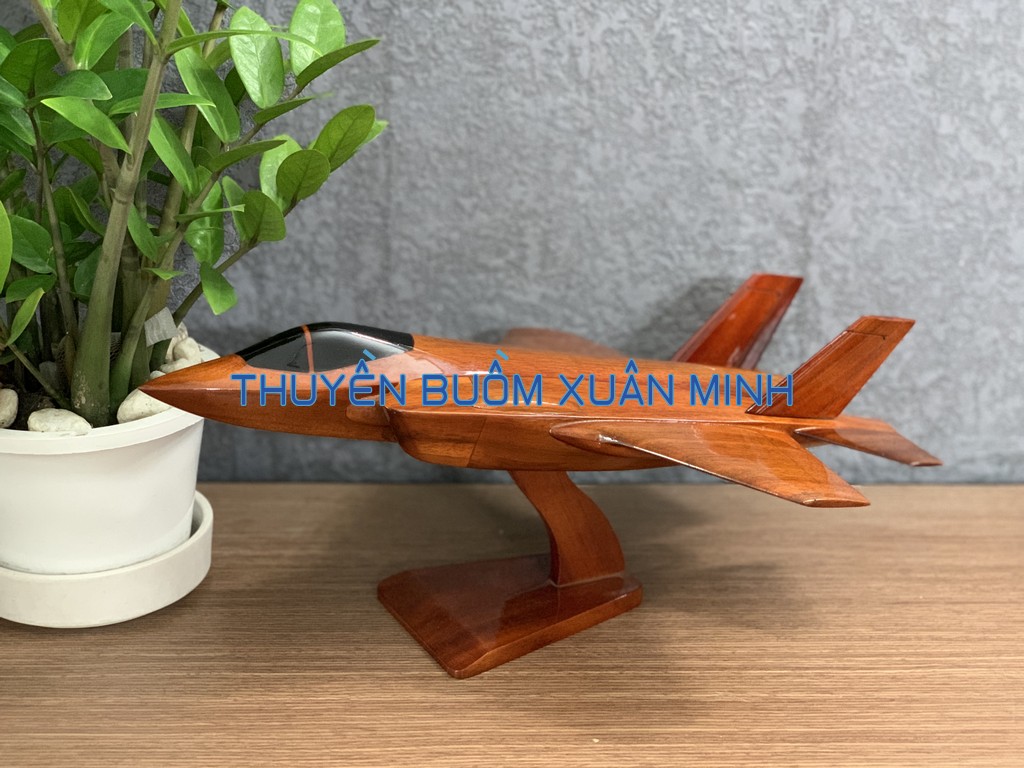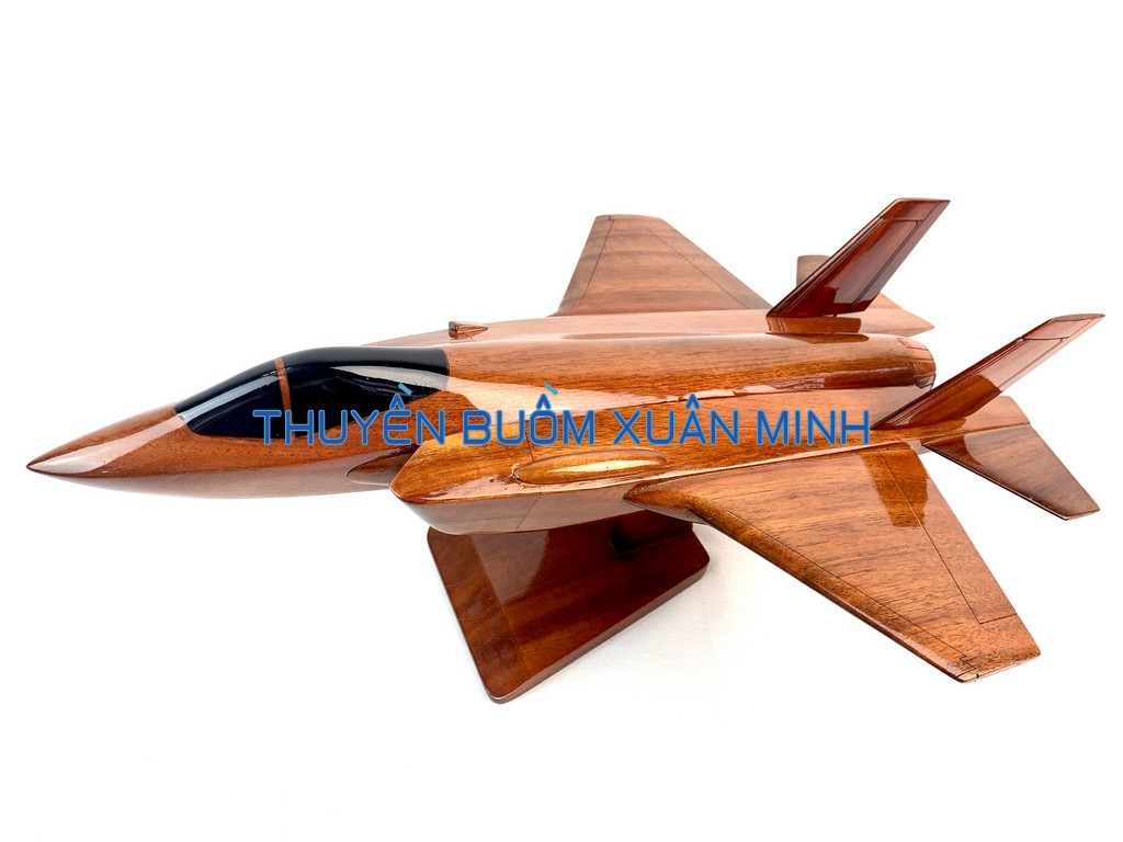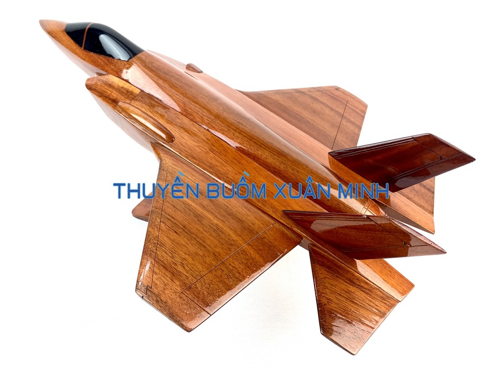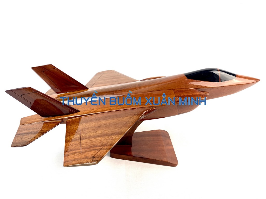 F-35 Lightning II là tên gọi chung cho 3 biến thể máy bay khác nhau dựa trên thiết kế cơ sở X-35 của dự án phát triển máy bay tiêm kích bom phối hợp (JSF) một chỗ ngồi. Sản phẩm như hình, được thủ công từ gỗ Tràm (Keo) tự nhiên 100% và được sơn bóng PU giúp giữ tone màu gỗ tự nhiên lâu bền