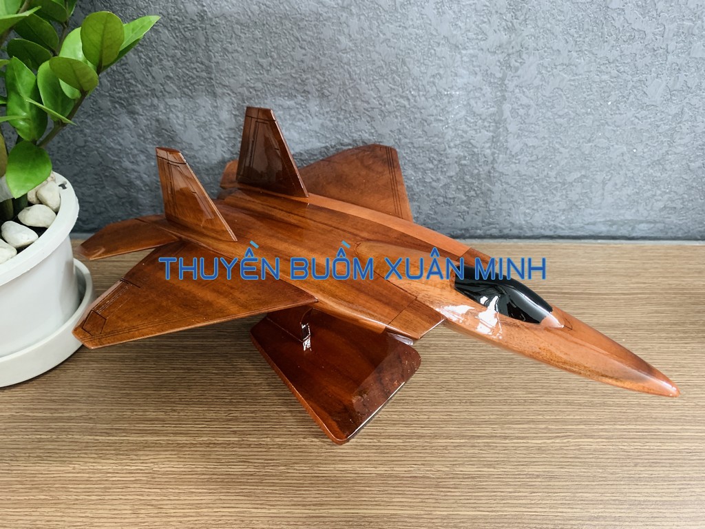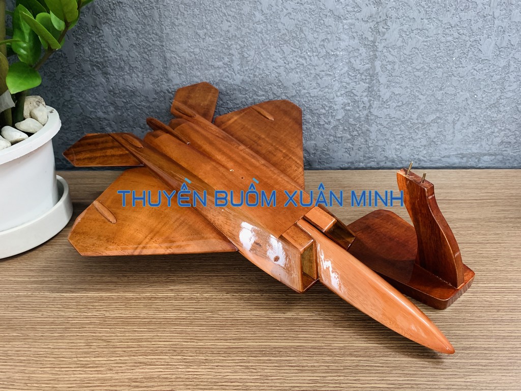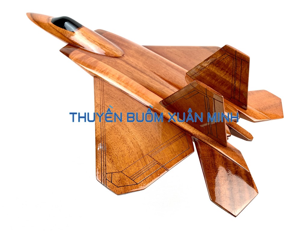 Lockheed Martin F-22 Raptor (Chim ăn thịt) là một máy bay tiêm kích thế hệ thứ 5 sử dụng kỹ thuật tàng hình đầu tiên trên thế giới. Sản phẩm như hình, được thủ công từ gỗ Tràm (Keo) tự nhiên 100% và được sơn bóng PU giúp giữ tone màu gỗ tự nhiên lâu bền