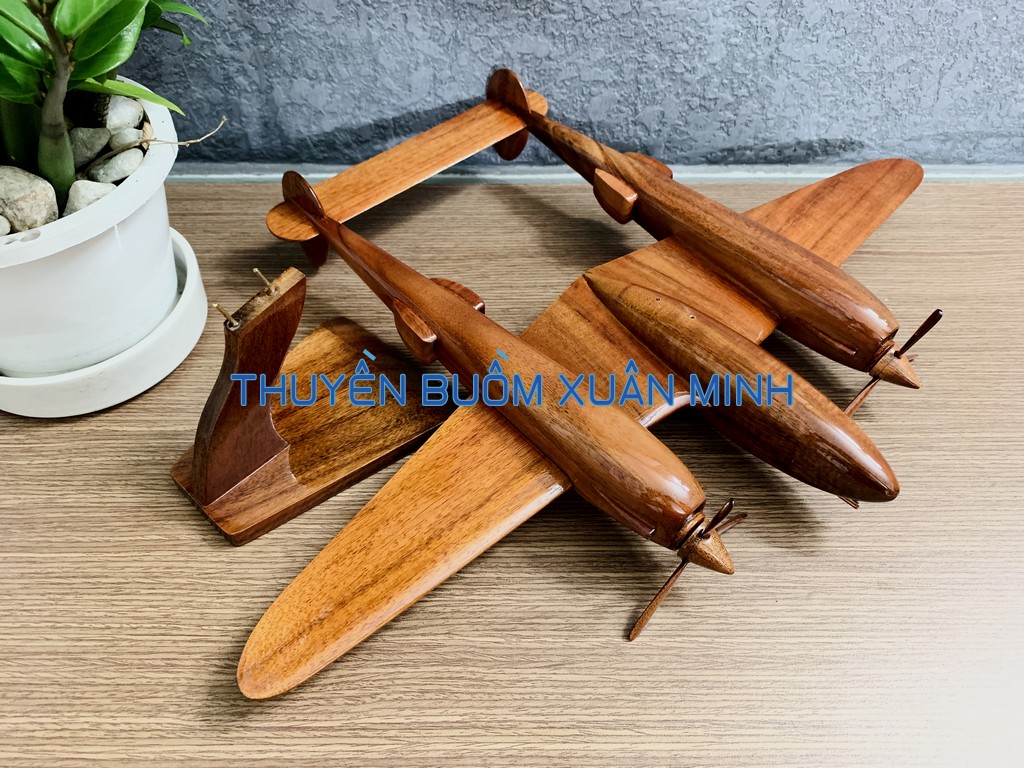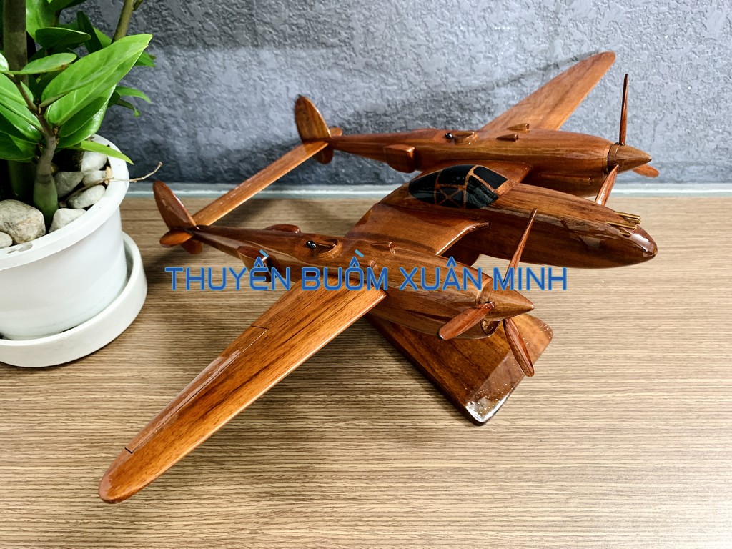 **MÔ HÌNH MÁY BAY TIÊM KÍCH LOCKHEED P-38 TRANG TRÍ | GỖ TRÀM TỰ NHIÊN | SIZE LỚN