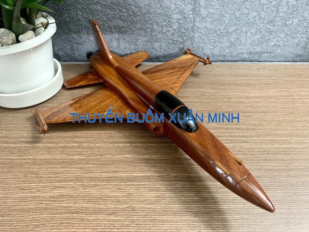 F-5 là một máy bay tiêm kích siêu âm hạng nhẹ hai động cơ được sử dụng rộng rãi, do hãng Northrop tại Hoa Kỳ thiết kế và chế tạo bắt đầu vào thập kỷ 1960. Sản phẩm như hình, được thủ công từ gỗ Tràm (Keo) tự nhiên 100% và được sơn bóng PU giúp giữ tone màu gỗ tự nhiên lâu bền