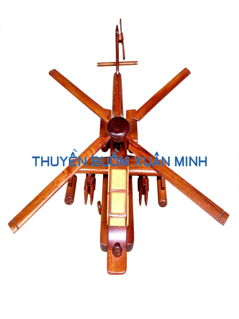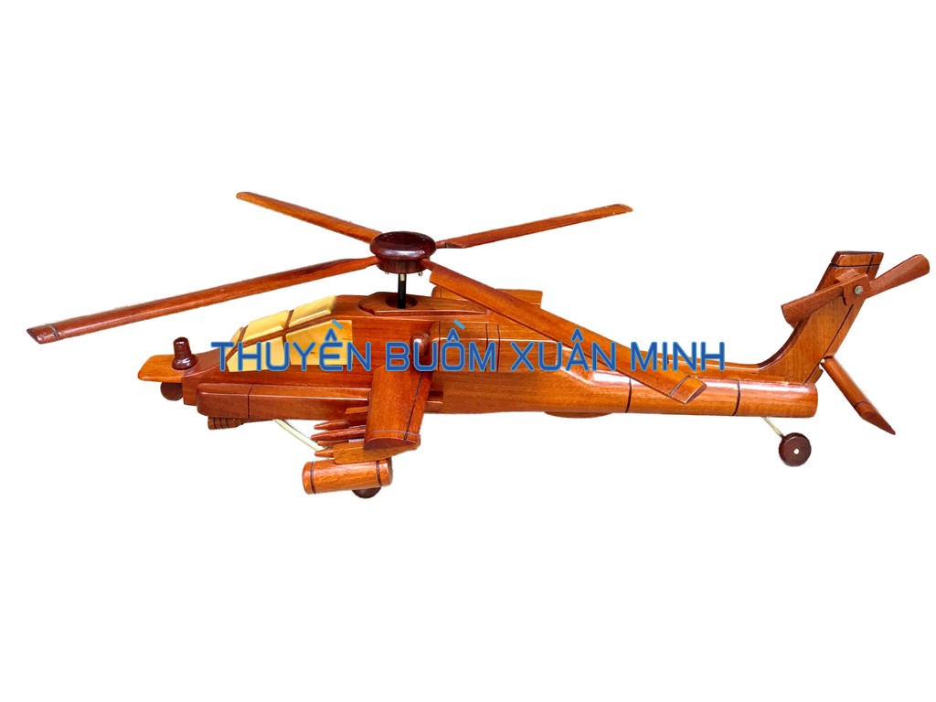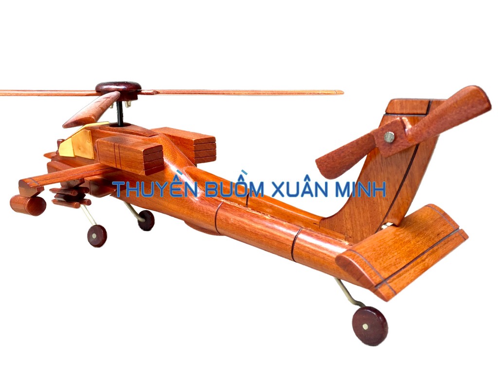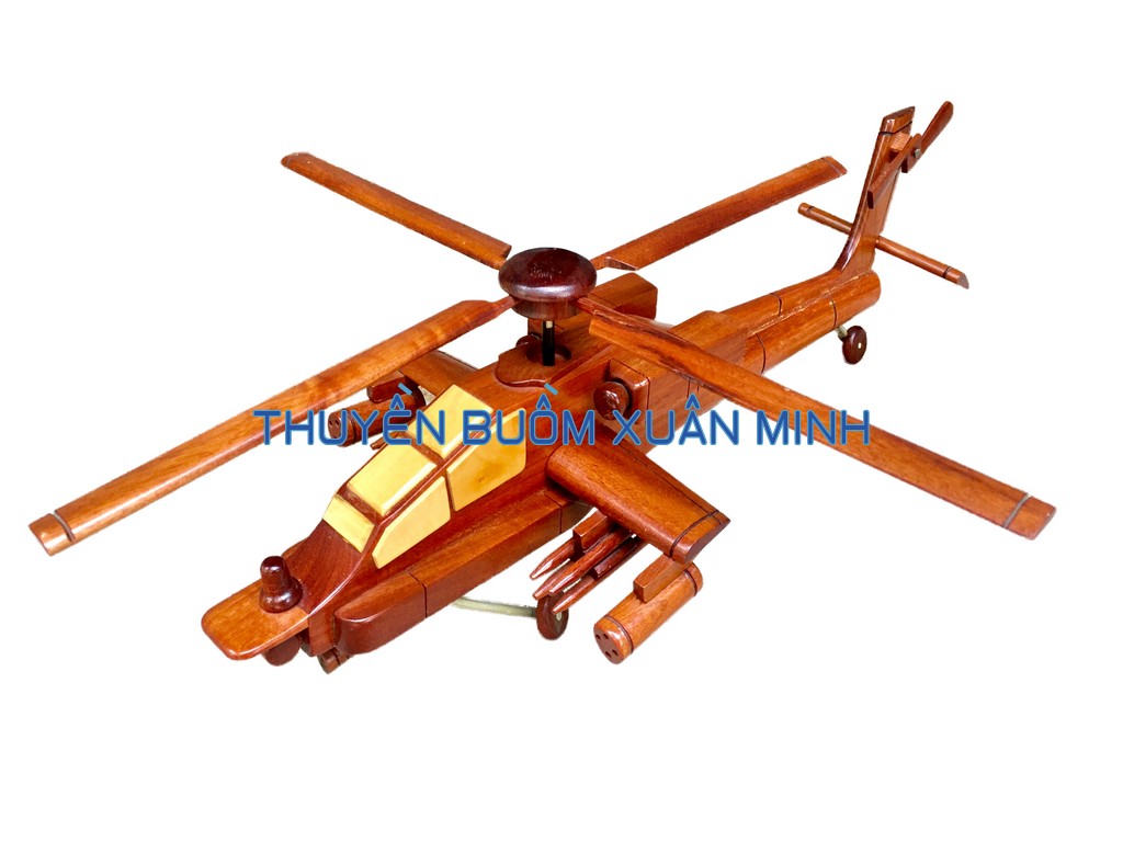 AH-64 Apache là một loại máy bay trực thăng tấn công của Lục quân Hoa Kỳ - là thế hệ kế tiếp của máy bay trực thăng Bell AH-1 Cobra. Sản phẩm như hình, được thủ công từ gỗ Căm Xe 100% và được sơn bóng PU giúp giữ tone màu gỗ tự nhiên lâu bền