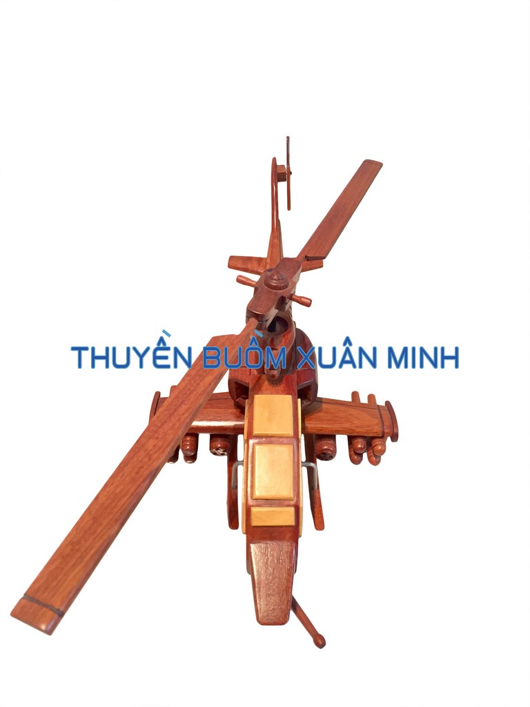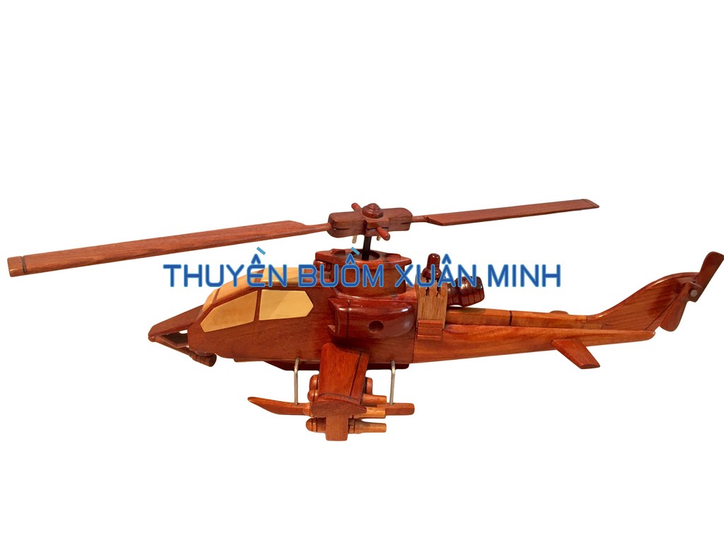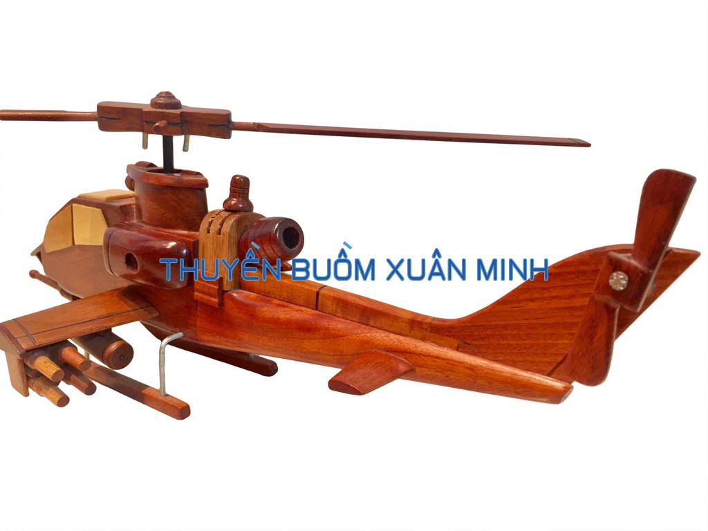 AH-1 Cobra là loại máy bay trực thăng chiến đấu đa nhiệm vụ hai cánh quạt một động cơ do công ty sản xuất máy bay Bell (Bell Helicopter) chế tạo. Sản phẩm như hình, được thủ công từ gỗ Căm Xe 100% và được sơn bóng PU giúp giữ tone màu gỗ tự nhiên lâu bền