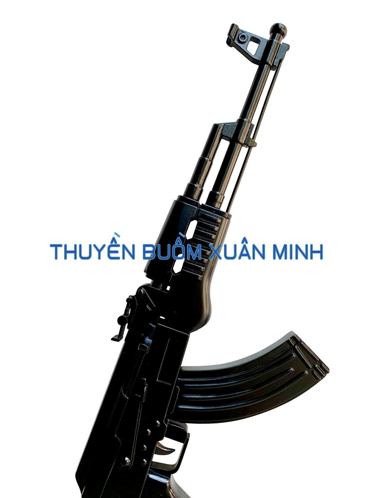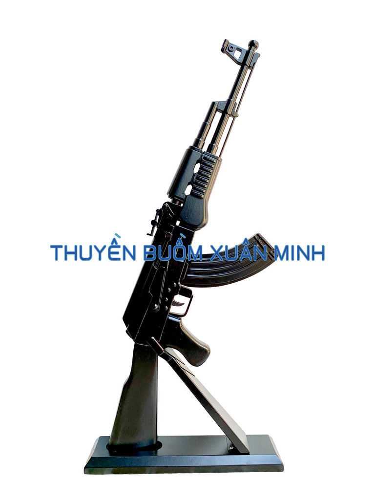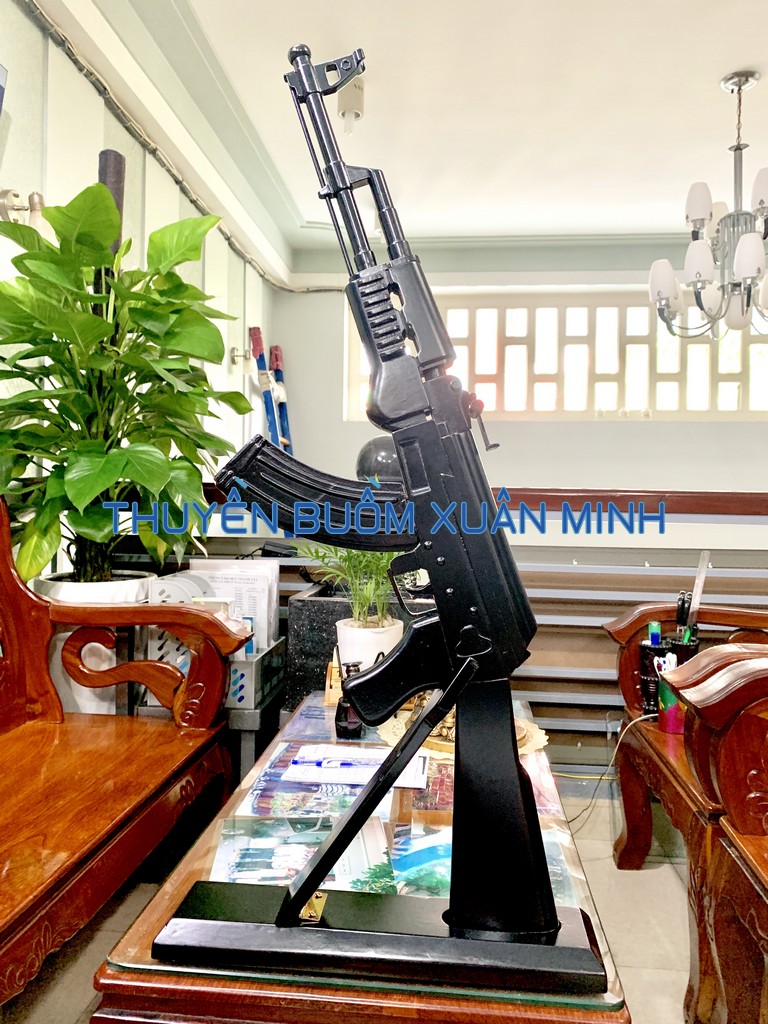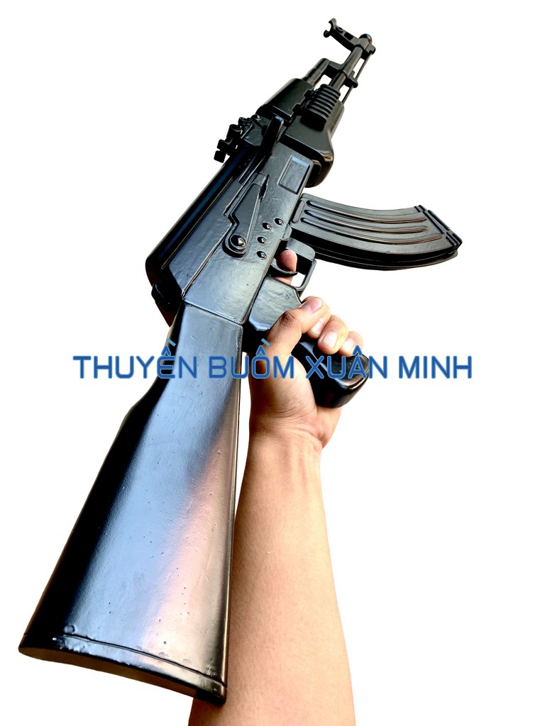 _ Sản phẩm mô hình súng AK-47 được mô phỏng từ súng trường AK-47 thực tế, mang đậm tính lịch sử và được trang bị thêm phụ kiện ốp tay cầm khi giương súng.