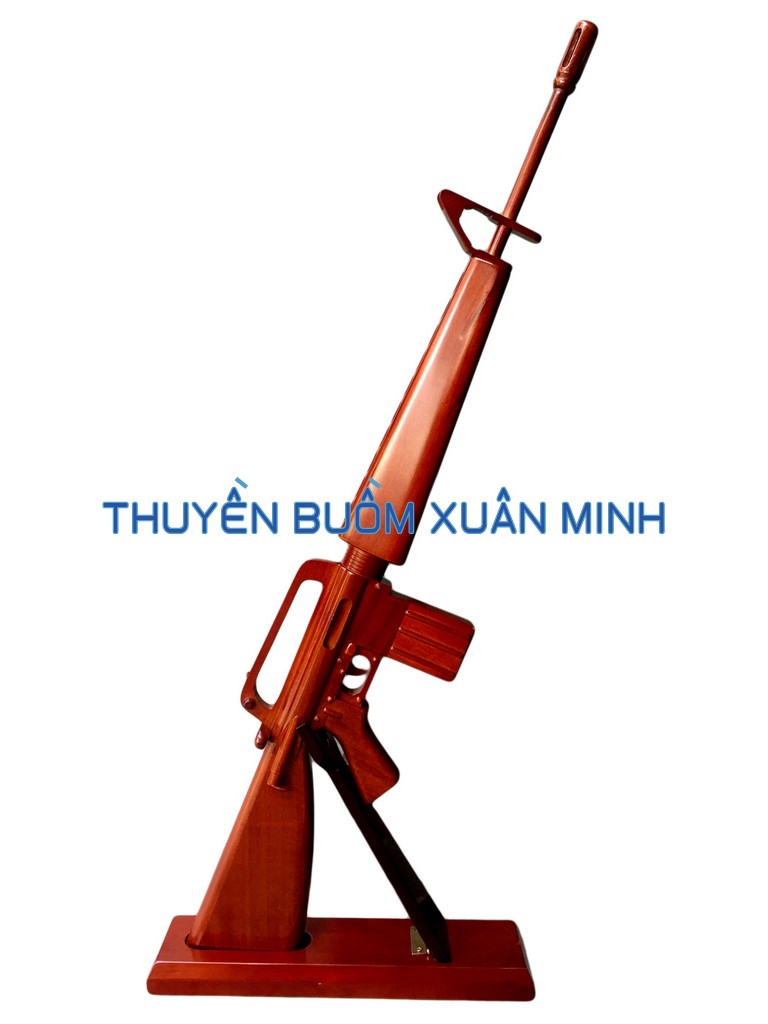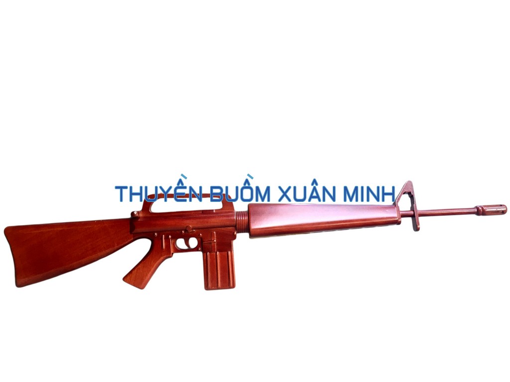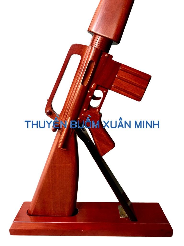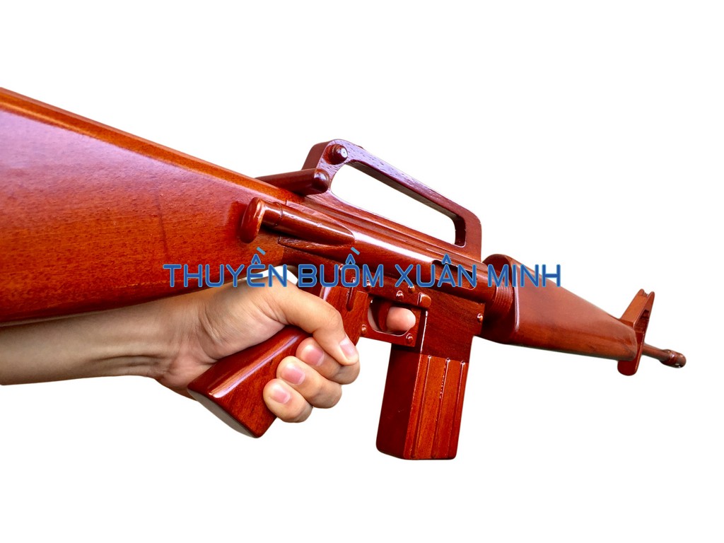 Súng M16 là tên của một loạt súng trường do hãng Colt cải tiến từ súng ArmaLite AR-15, đây là loại súng tác chiến bắn đạn 5,56×45mm NATO. Sản phẩm như hình và được thủ công từ gỗ Căm xe và gỗ Gõ 100%