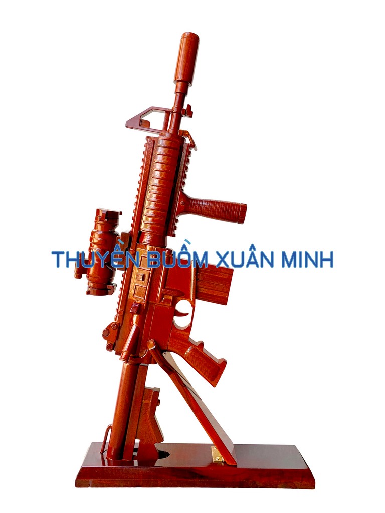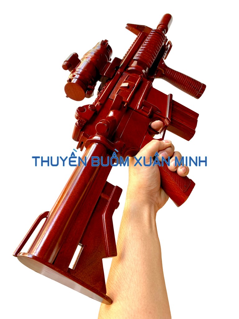Súng M4-Carbine này được sản xuất dựa trên nguyên bản là súng AR-15 của hãng ArmaLite, sản phẩm như hình và được thủ công từ gỗ Căm xe và gỗ Gõ 100%