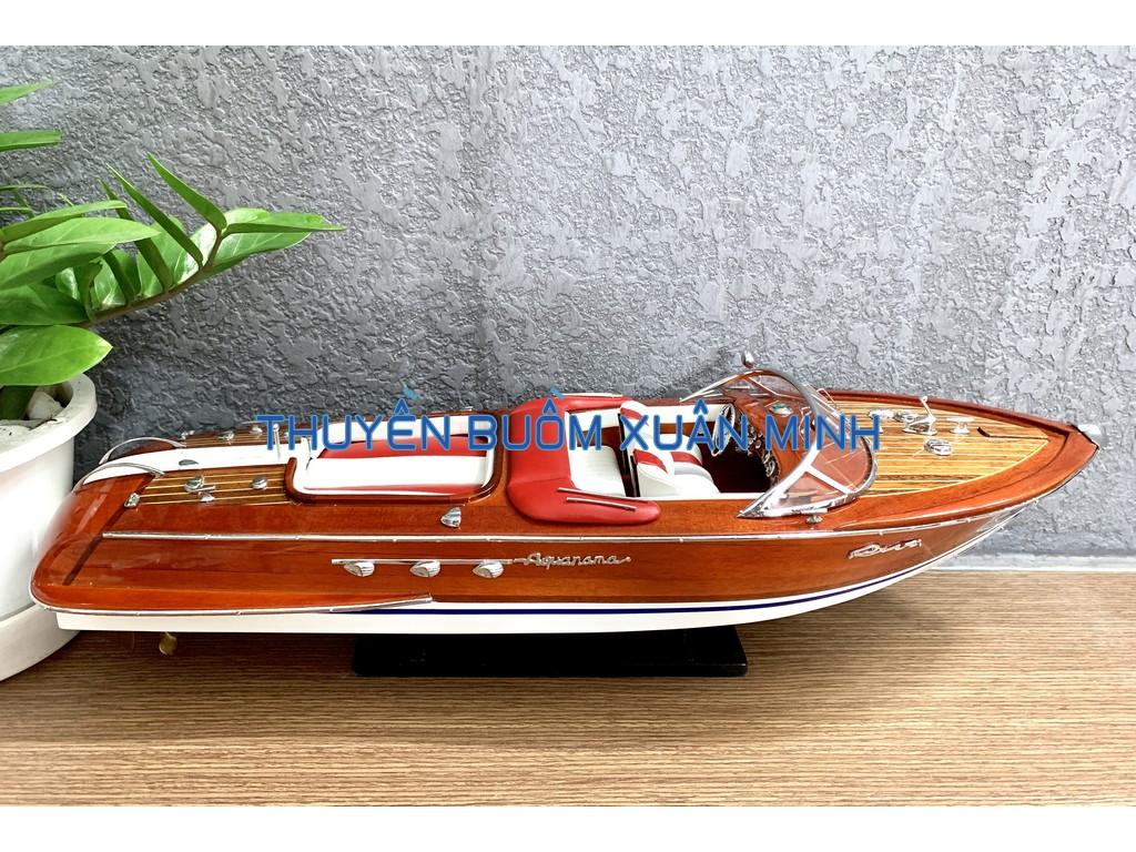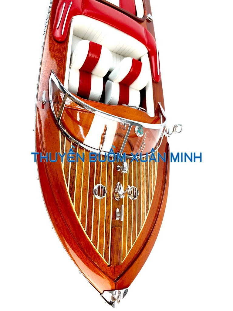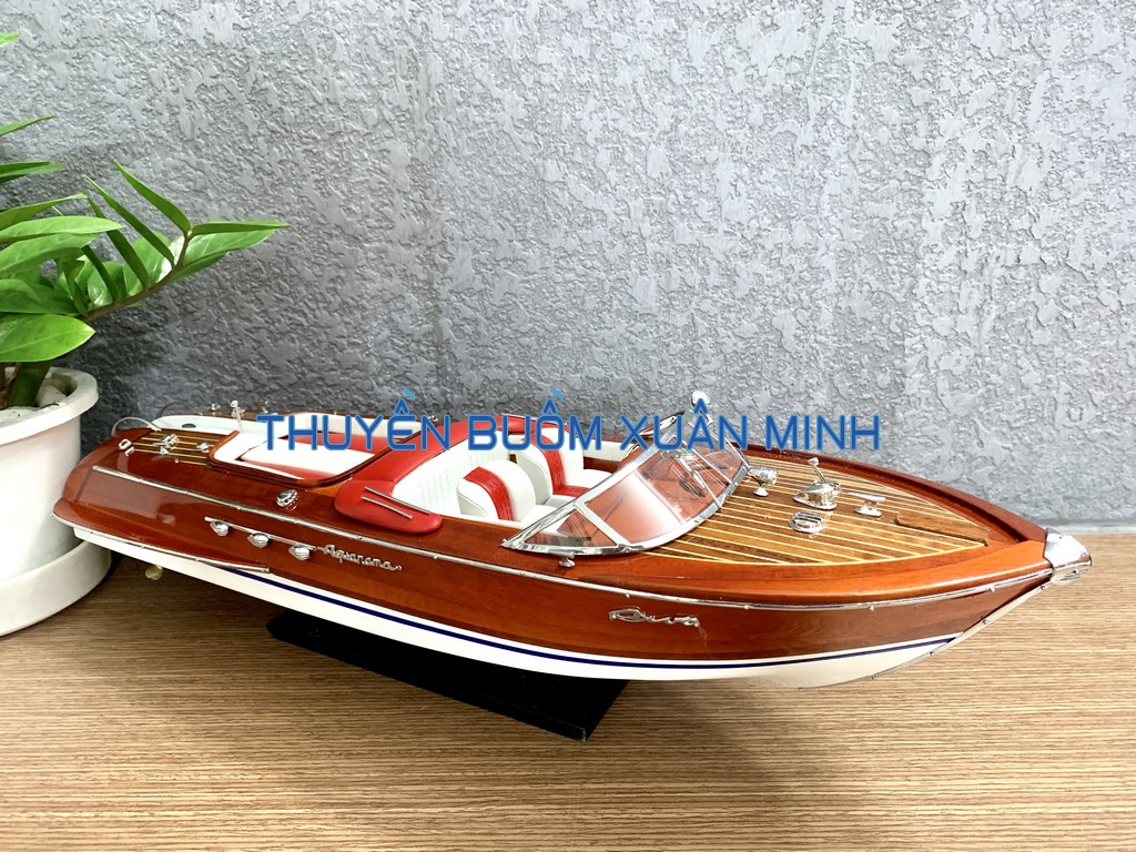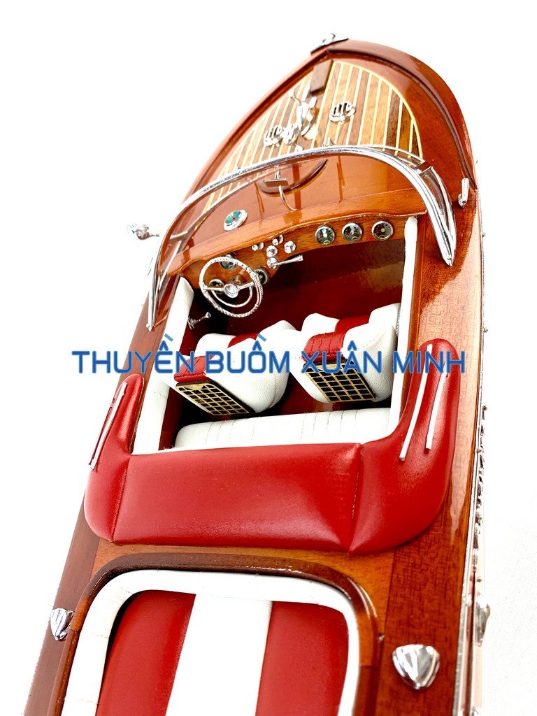**MÔ HÌNH TÀU CANO ĐUA SANG TRỌNG RIVA AQUARAMA | GỖ TỰ NHIÊN | THÂN 53cm (SOFA TRẮNG_ĐỎ)