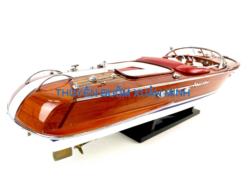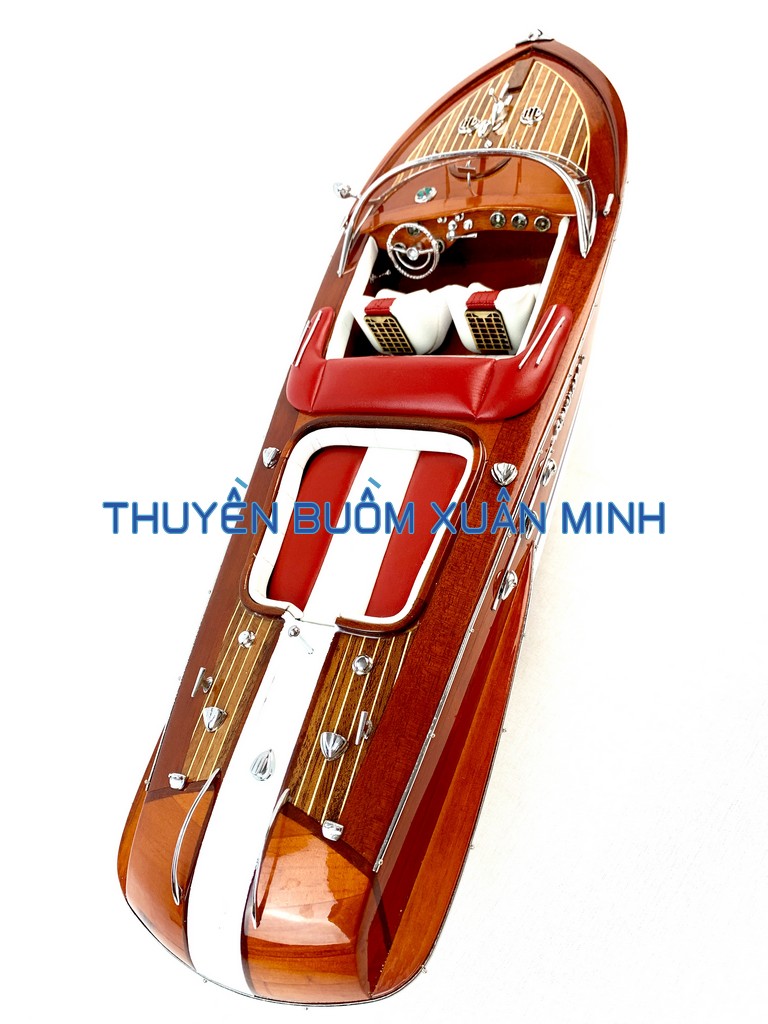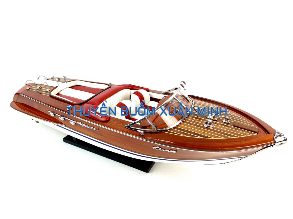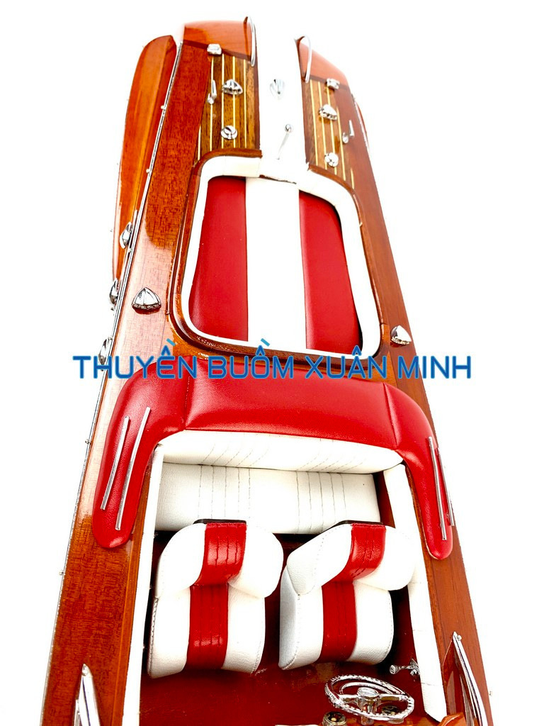 **MÔ HÌNH TÀU CANO ĐUA SANG TRỌNG RIVA AQUARAMA | GỖ TỰ NHIÊN | THÂN 53cm (SOFA TRẮNG_ĐỎ)