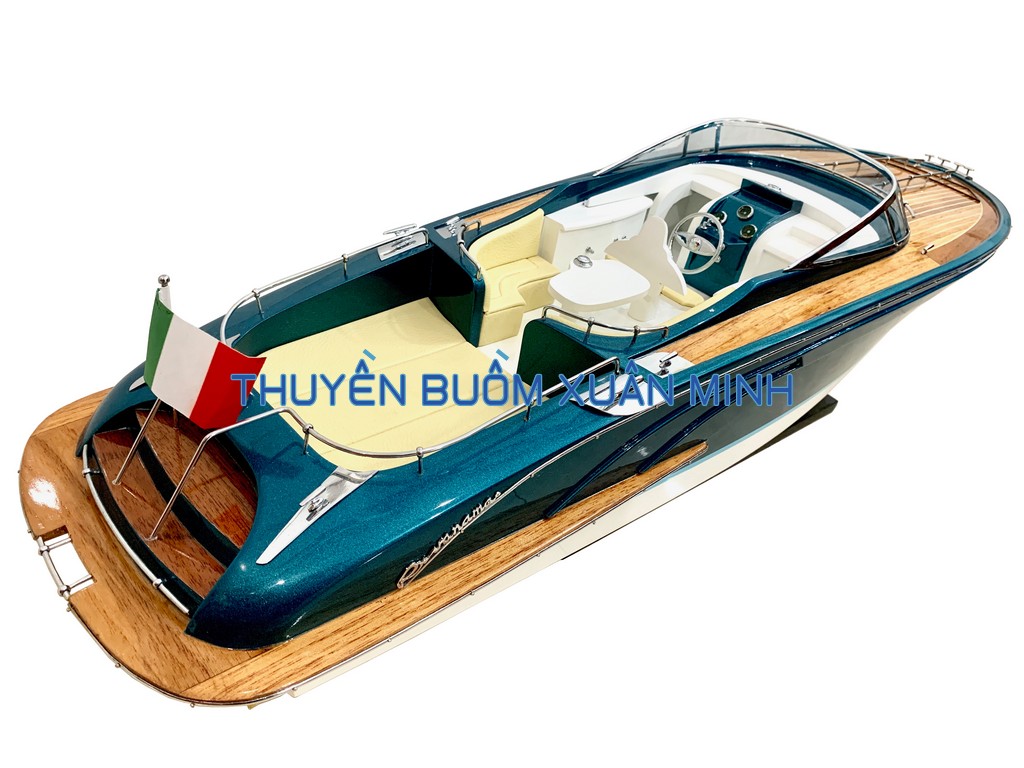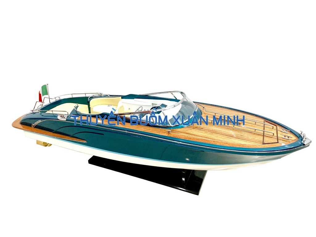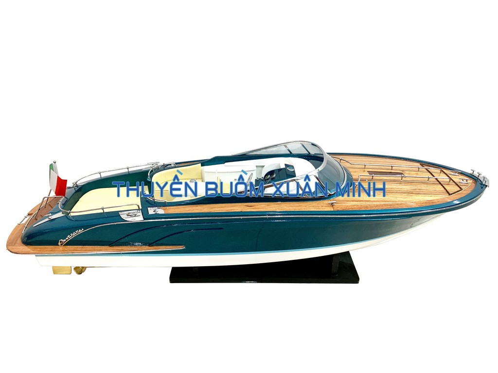 **MÔ HÌNH TÀU CANO ĐUA SANG TRỌNG RIVA RAMA | GỖ TỰ NHIÊN | THÂN 70cm (SƠN XANH)