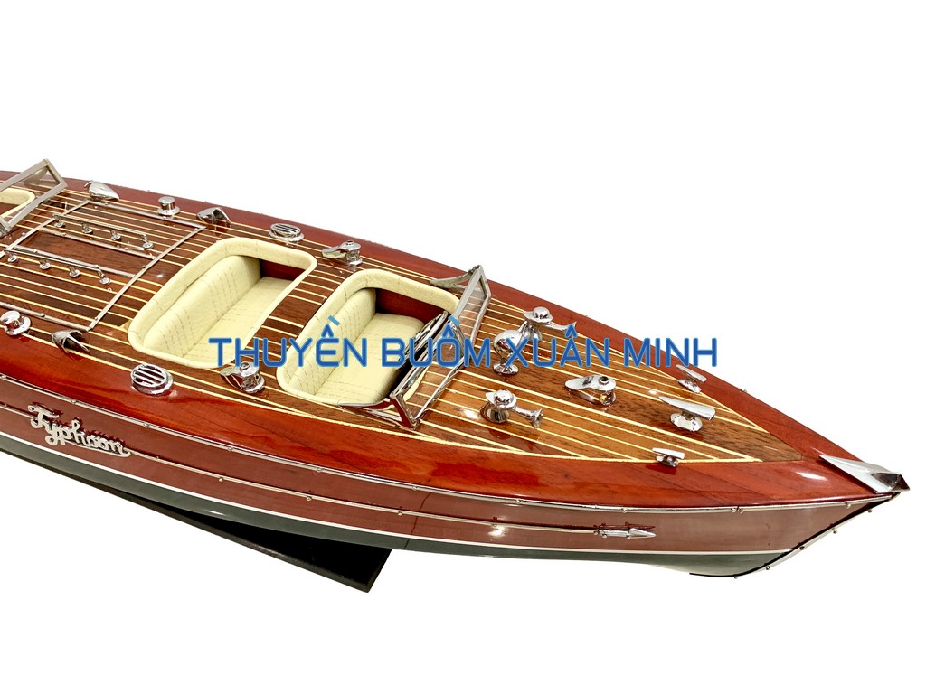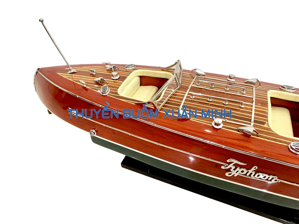 Typhoon được thiết kế lại vào năm 1929 bởi George Crouch, nguồn gốc của Typhoon đã bắt đầu từ Edsel Ford, một người đam mê raceboat avid. Sản phẩm như hình, được thủ công từ gỗ tự nhiên 100% và được sơn tone màu đỏ gỗ và xanh lá, nệm kem.