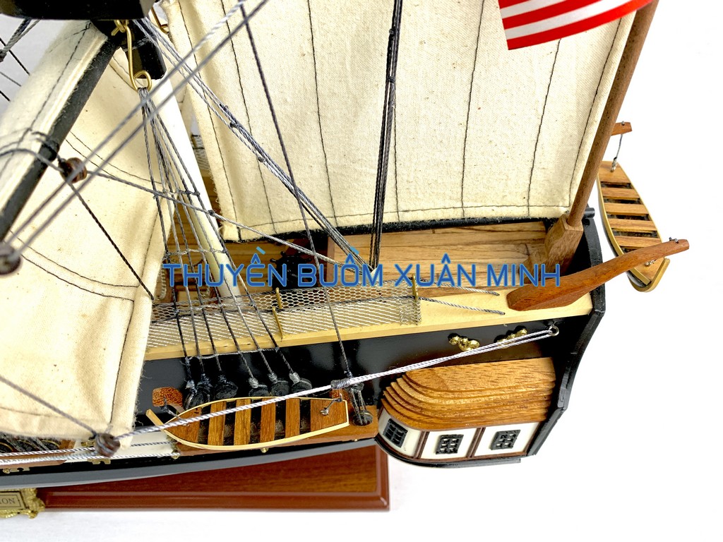 _ Mô hình được xây dựng dựa trên con tàu thực tế, theo bản vẽ, tranh vẽ mang tính lịch sử. Phía sau đuôi thuyền được thiết kế chi tiết, với lá cờ Mỹ giống với phiên bản thực tế.