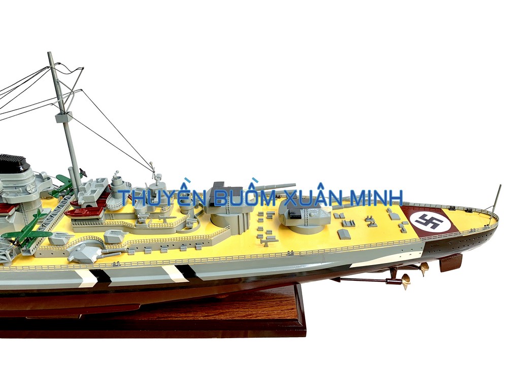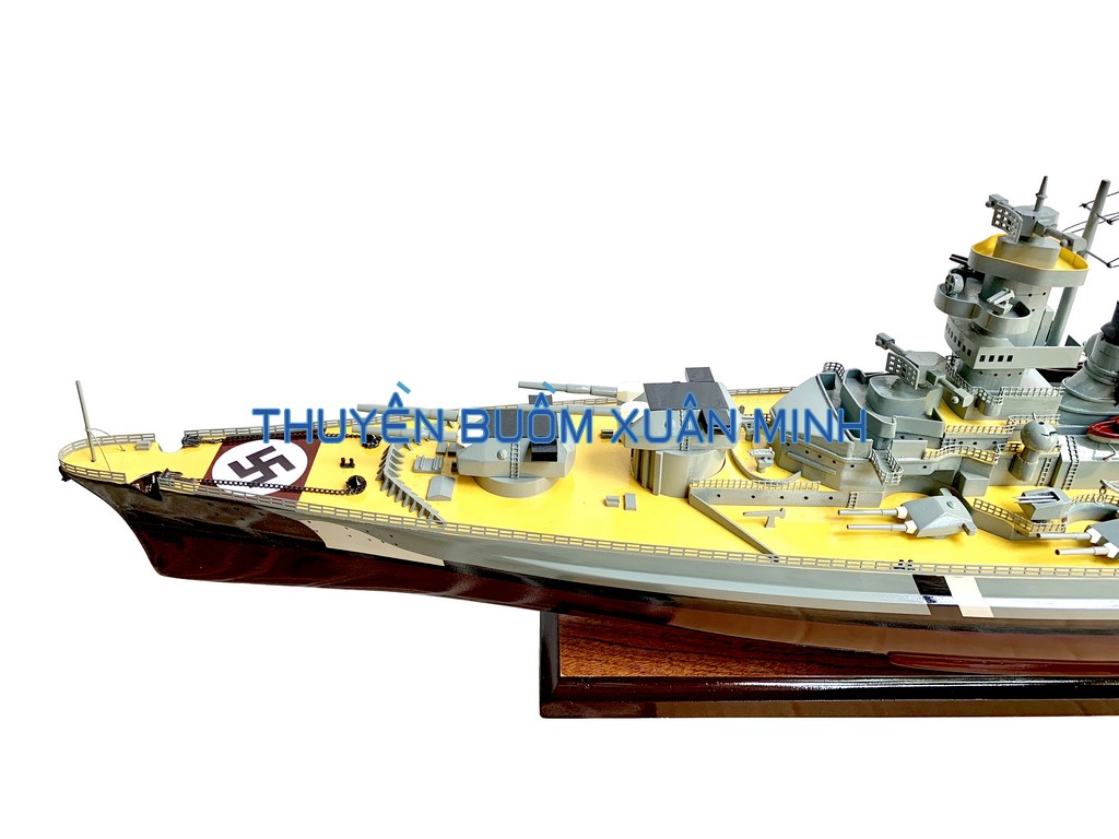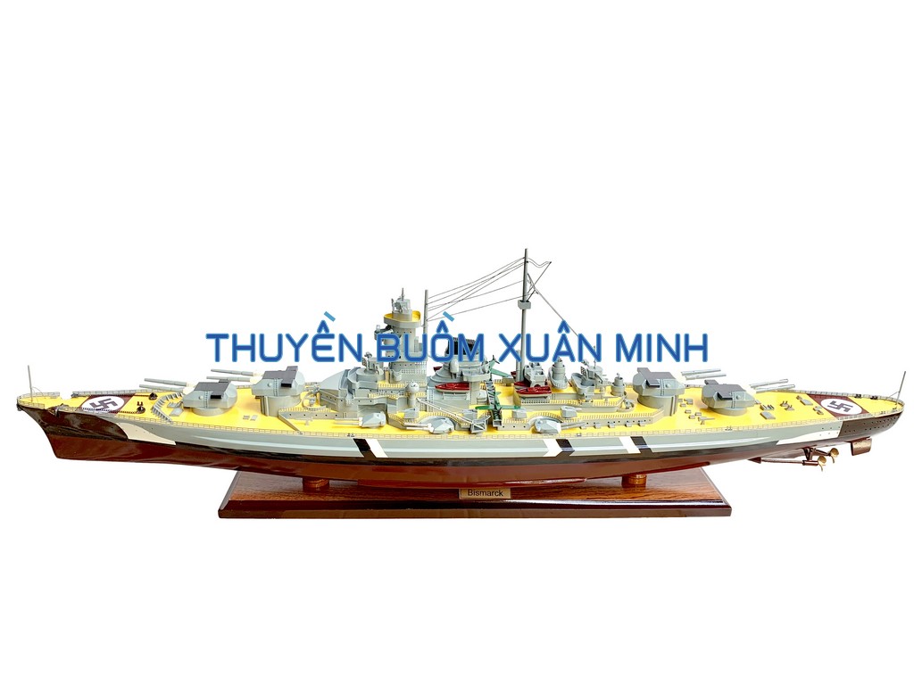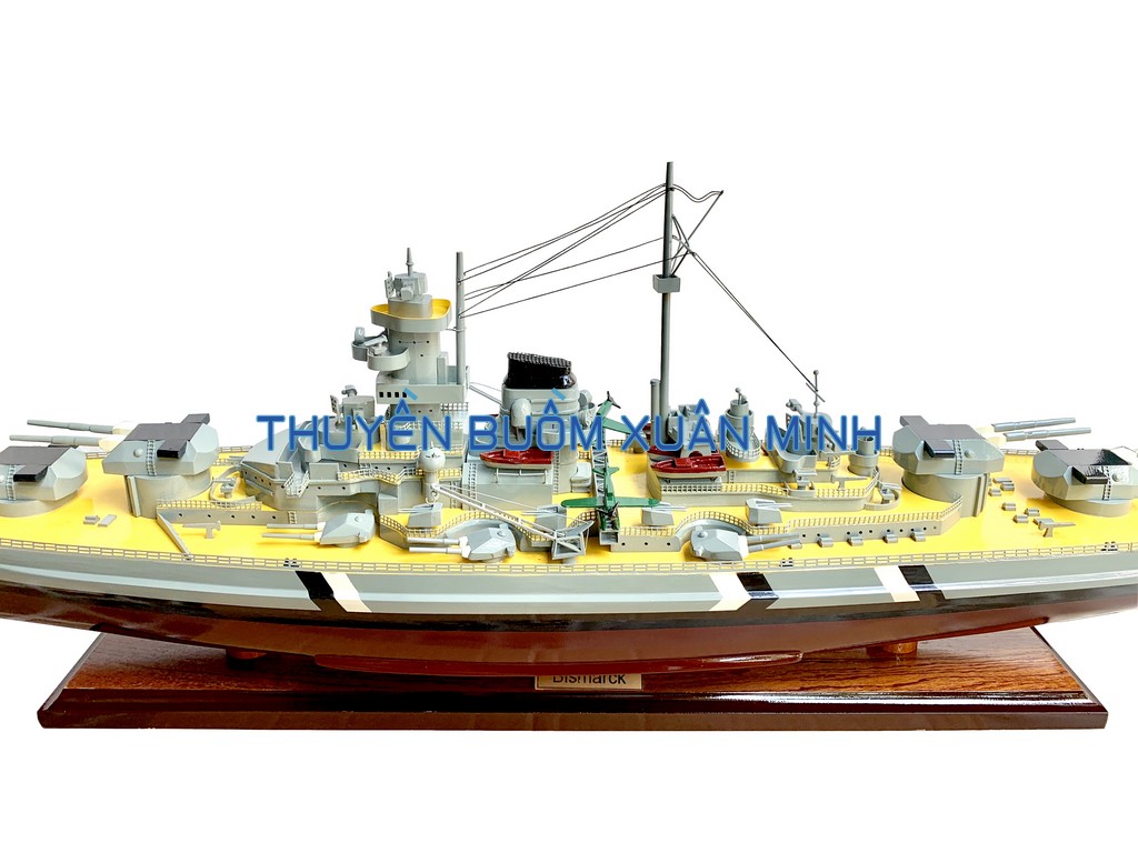 KMS Bismarck là một chiếc thiết giáp hạm của Hải quân Đức là chiếc dẫn đầu trong dòng seri của nó, với tên được đặt theo vị Thủ tướng nổi tiếng trong thế kỷ 19: Otto von Bismarck. Sản phẩm như hình, được thủ công từ gỗ tự nhiên 100% và được sơn tone màu của một chiếc chiến hạm thực tế