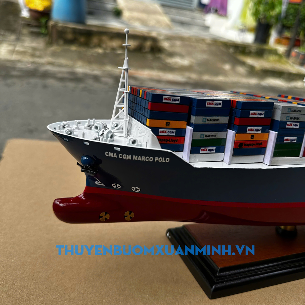 + 01 Mô Hình Tàu Thuỷ Chở Container CMA CGM (Sơn Màu) - Thân 70cm, chất liệu gỗ Căm Xe 100% như hình - xuất xứ Việt Nam.