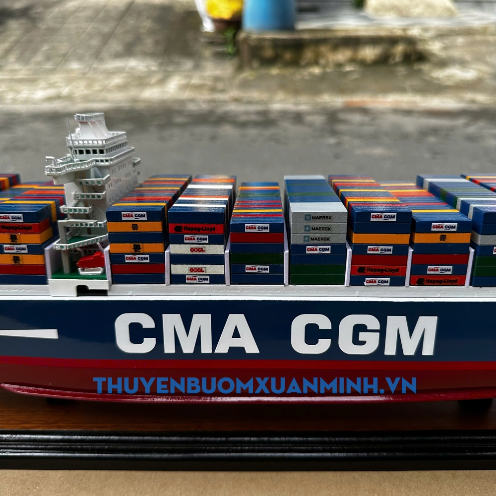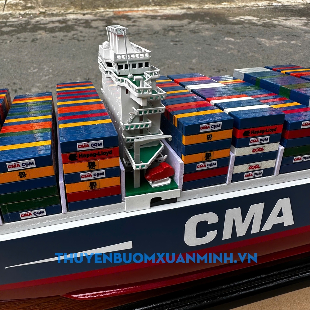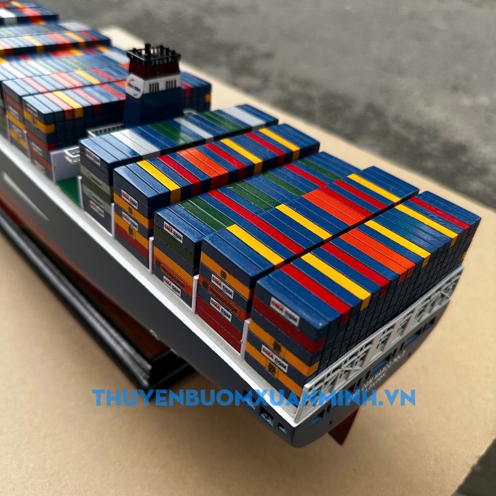 **MÔ HÌNH TÀU THUỶ CHỞ CONTAINER CMA CGM| GỖ TỰ NHIÊN | DÀI 70cm - GỖ SƠN MÀU