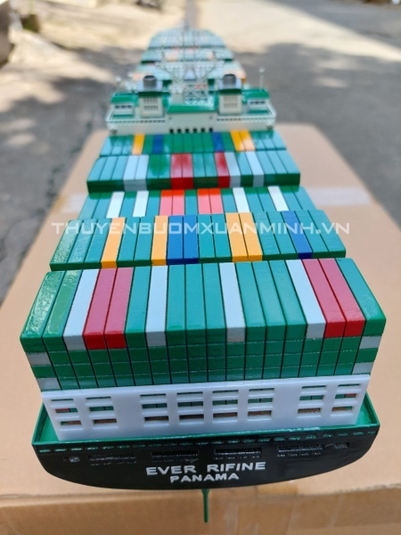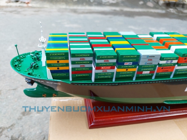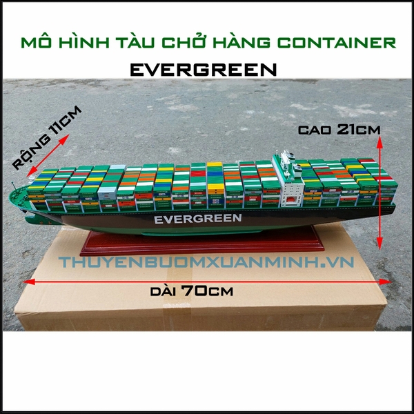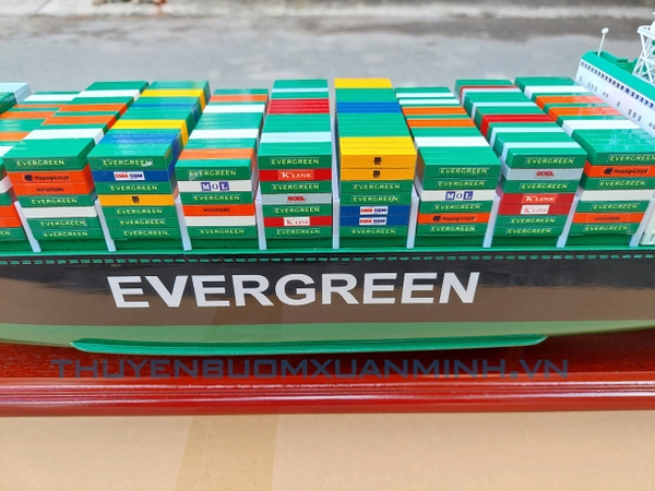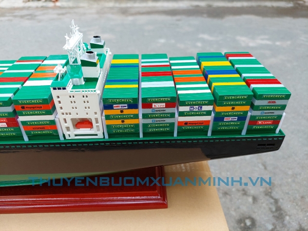 + 01 Mô Hình Tàu Thuỷ Chở Container EVERGEEN (Sơn Màu) - Thân 70cm, chất liệu gỗ Căm Xe 100% như hình - xuất xứ Việt Nam.