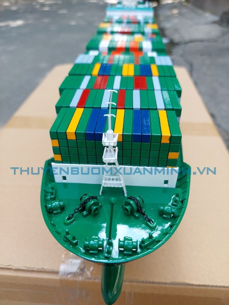**MÔ HÌNH TÀU THUỶ CHỞ CONTAINER EVERGREEN| GỖ TỰ NHIÊN | THÂN 70cm (SƠN MÀU)