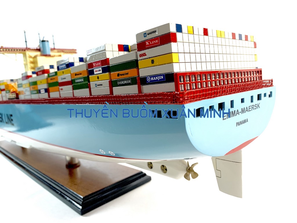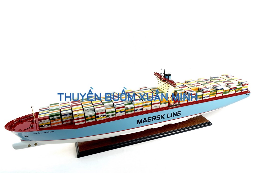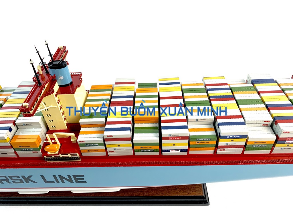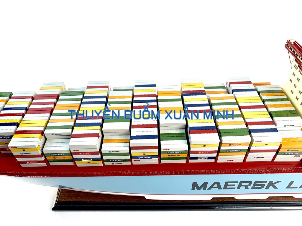 Tàu Maersk Line là tàu chở container lớn nhất thế giới hiện nay (năm 2007) của Tập đoàn A.P.Moller-Maersk có tải trọng 11.000 TEU. Sản phẩm như hình, được thủ công từ gỗ Căm Xe 100% và được sơn tone màu Đỏ-Xanh-Trắng, mô hình được nổi bật hơn khi trưng bày trong tủ kính.