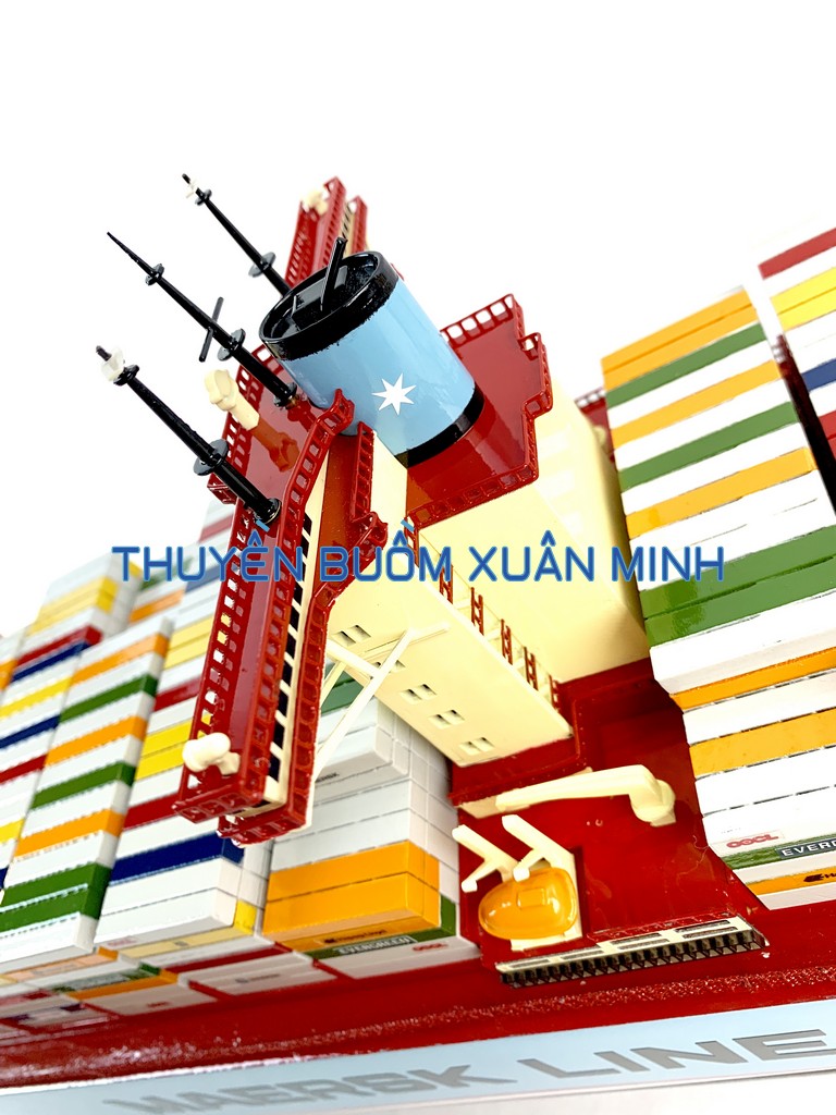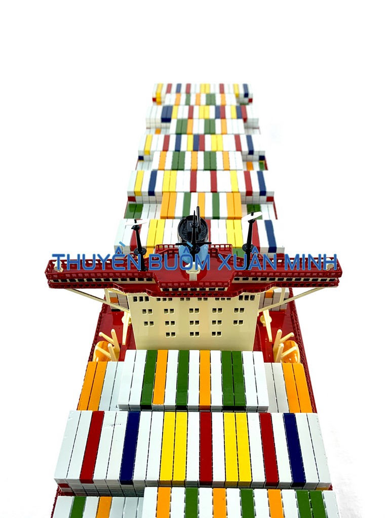 _ Mô hình được xây dựng và thiết kế dựa trên con tàu thực tế, các chi tiết thùng container đều được thủ công từ gỗ, phun màu rất kỹ và không bị lem.