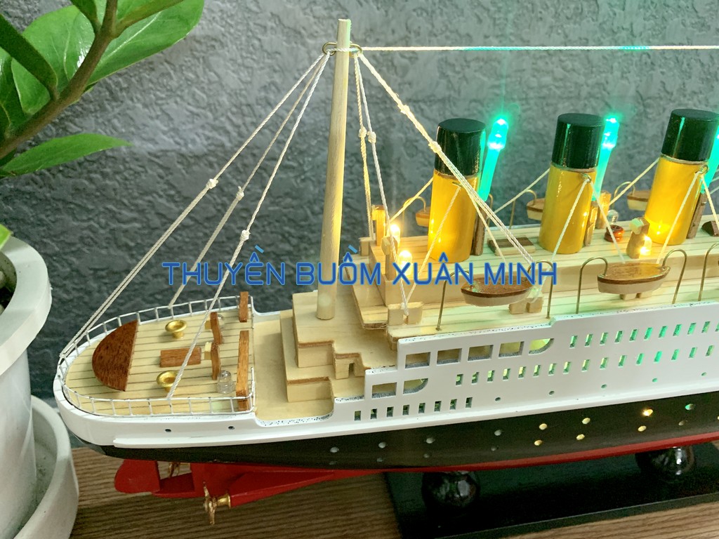 Con tàu bắt đầu được xây dựng vào năm 1909 và được hạ thuỷ vào năm 1912. TITANIC là một con tàu lớn, hiện đại và sang trọng nhất vào thời điểm đó. Sản phẩm như hình, được thủ công từ gỗ Xoan Đào 100% và được sơn tone màu trắng-đỏ-đen. Đặc biệt, sản phẩm được thiết kế thêm bộ đèn LED trên mặt sàn thuyền.