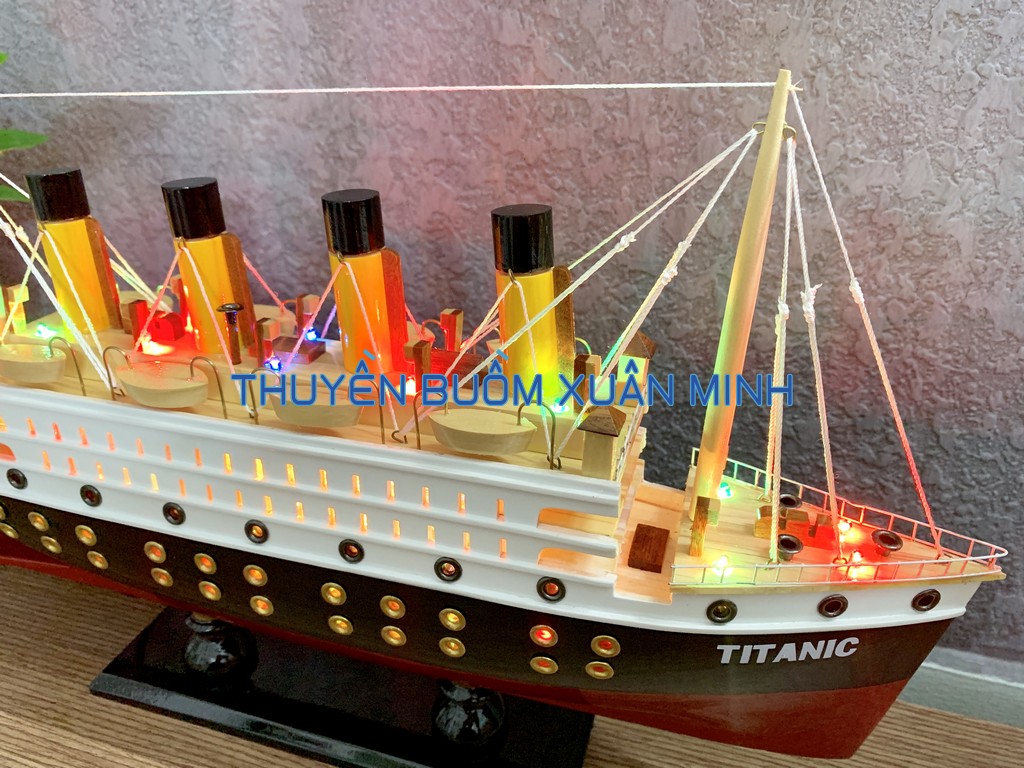 Con tàu bắt đầu được xây dựng vào năm 1909 và được hạ thuỷ vào năm 1912. TITANIC là một con tàu lớn, hiện đại và sang trọng nhất vào thời điểm đó. Sản phẩm như hình, được thủ công từ gỗ Xoan đào 100% và được sơn tone màu trắng-đỏ-đen. Đặc biệt, sản phẩm được thiết kế thêm bộ đèn LED trên mặt sàn thuyền.