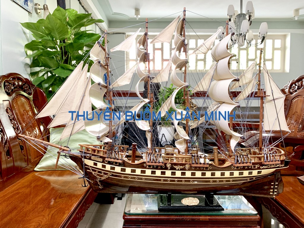 **MÔ HÌNH THUYỀN BUỒM GỖ PHONG THUỶ FRANCE II (TÀU BUÔN CỔ PHÁP) | HÀNG VIP XUẤT KHẨU - GỖ MUỒNG ĐEN | THÂN 80cm