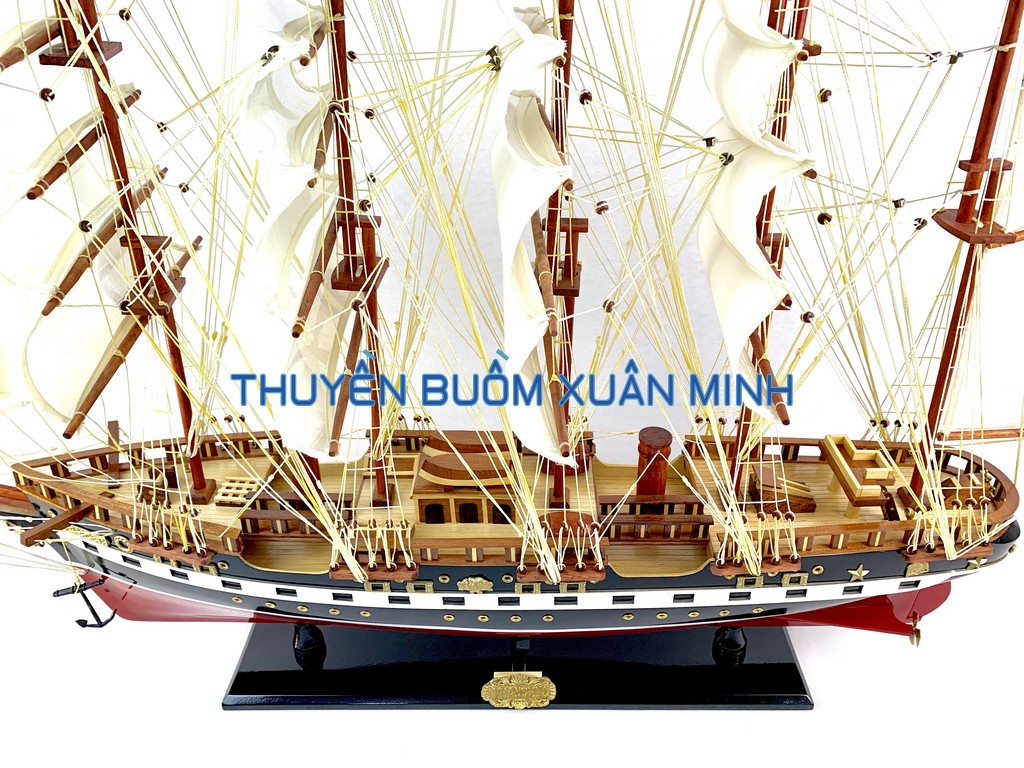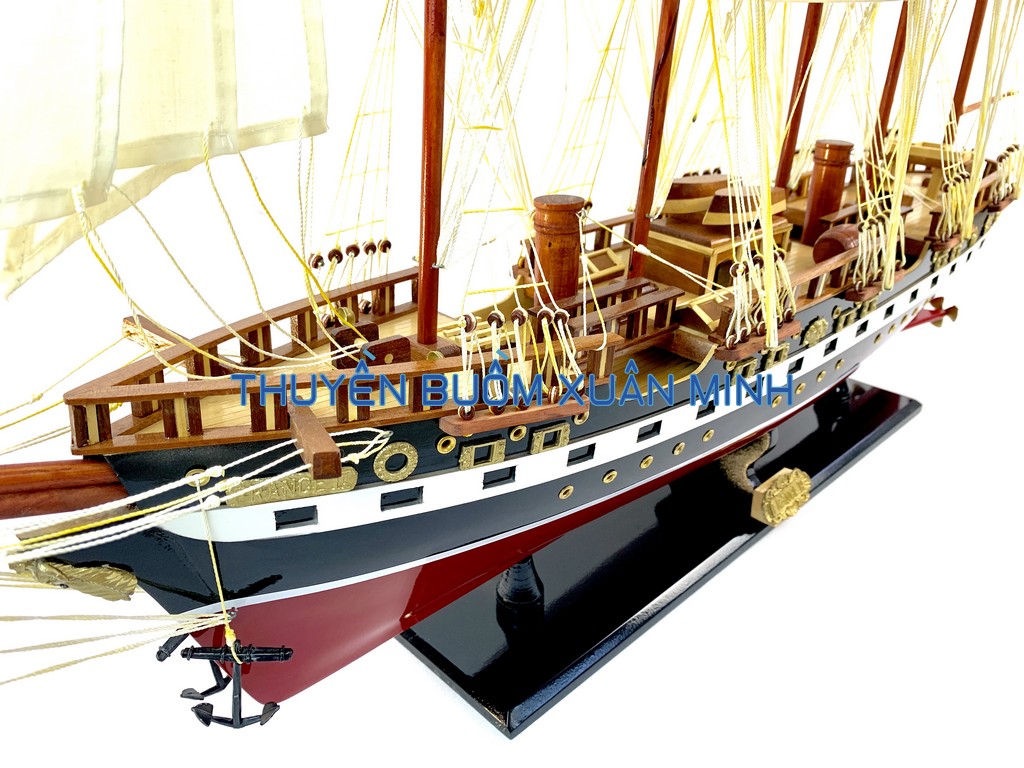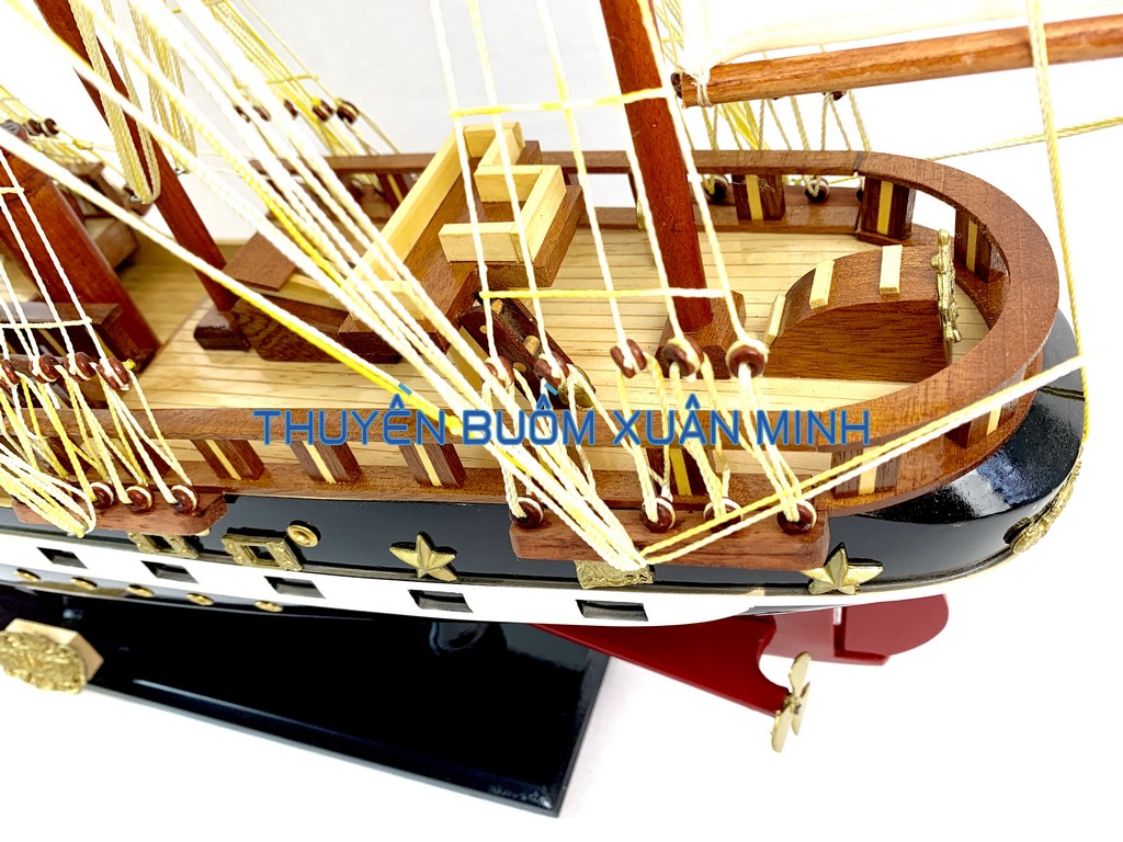 _ Mô hình được thiết kế tỉ mỉ, chắc chắn và được chạm khắc tinh xảo, bắt mắt người xem với chất liệu gỗ tự nhiên cùng với lớp sơn bóng PU không lo mối mọt trong thời gian dài. Hơn nữa các chi tiết, bộ phận như vỏ tàu, thân tàu, boong tàu, cột và cánh buồm, cũng như các trang trí khác.. được thiết kế phù hợp với tỷ lệ mô hình thuyền gỗ này.
