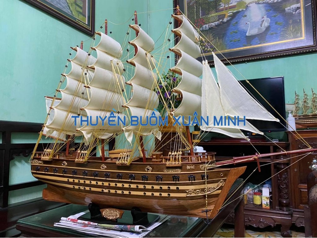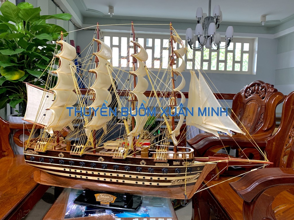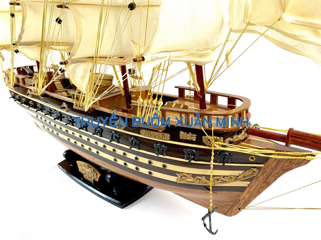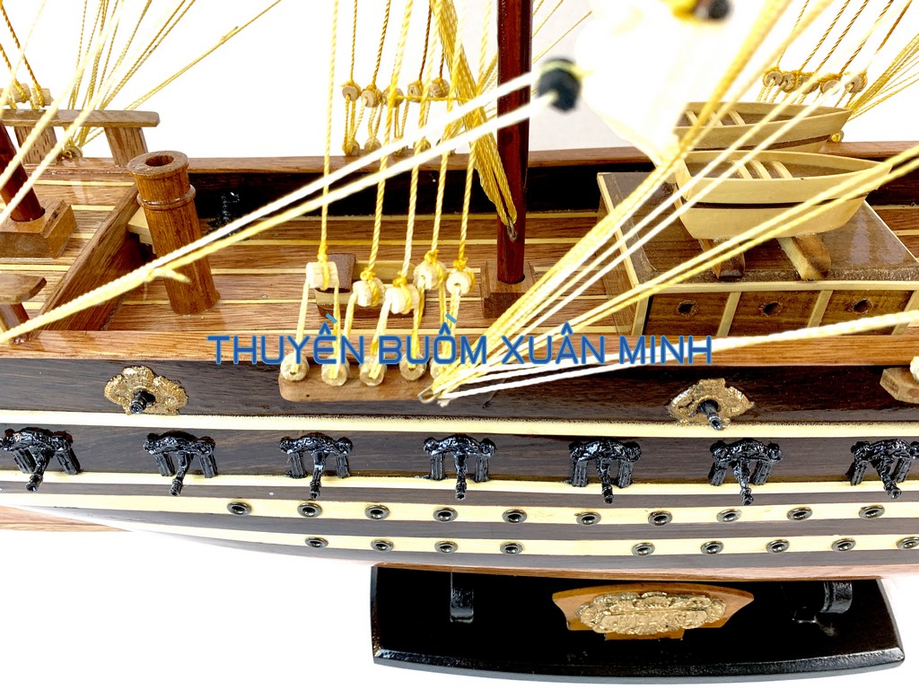 _ Mô hình được thiết kế tỉ mỉ, chắc chắn và được chạm khắc tinh xảo, bắt mắt người xem với chất liệu gỗ tự nhiên cùng với lớp sơn bóng PU không lo mối mọt trong thời gian dài. Hơn nữa các chi tiết, bộ phận như vỏ tàu, thân tàu, boong tàu, cột và cánh buồm, cũng như các trang trí khác.. được thiết kế phù hợp với tỷ lệ mô hình thuyền gỗ này.