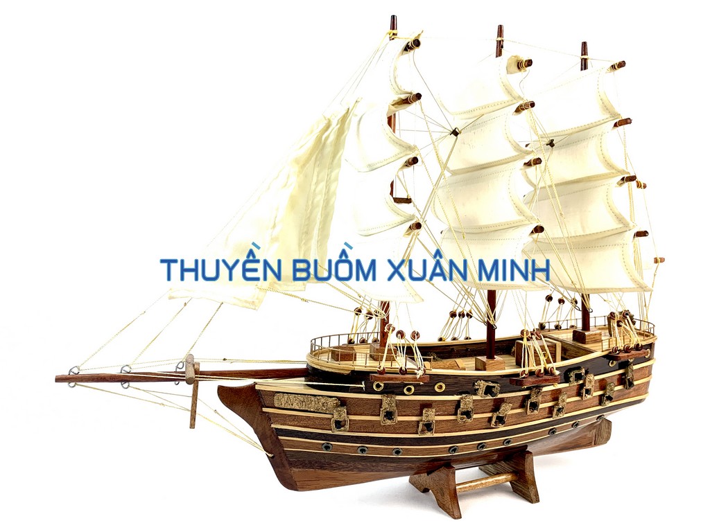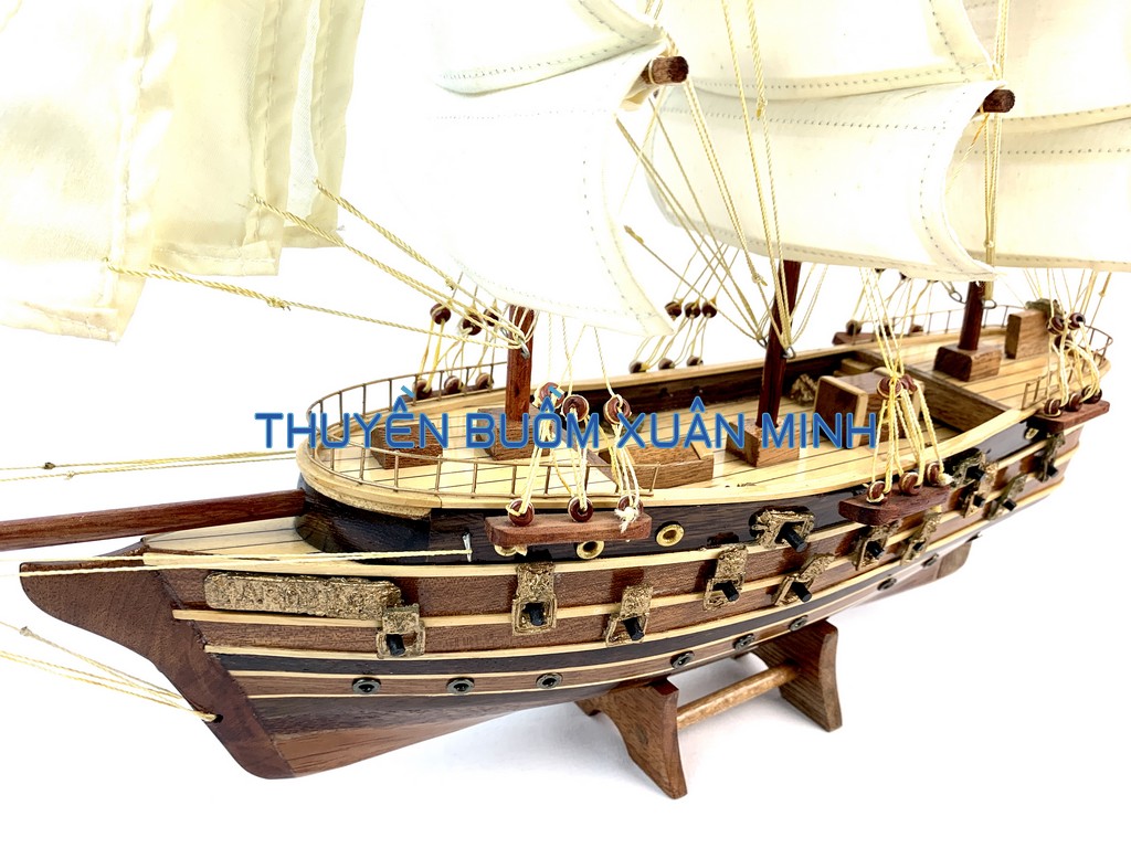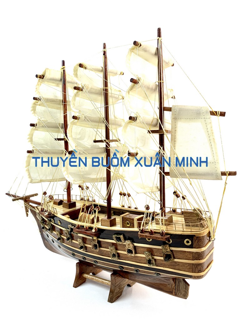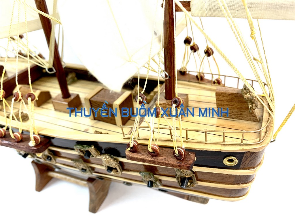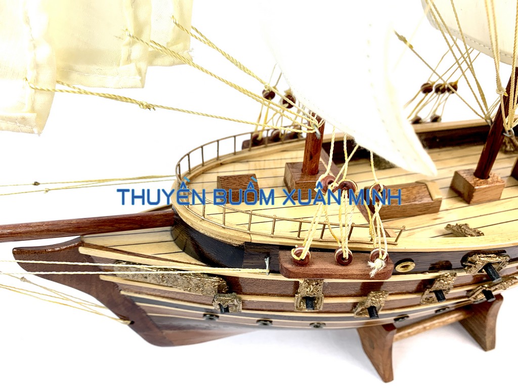 _ Mô hình được thiết kế tỉ mỉ, chắc chắn và được chạm khắc tinh xảo, bắt mắt người xem với chất liệu gỗ tự nhiên cùng với lớp sơn bóng PU không lo mối mọt trong thời gian dài. Hơn nữa các chi tiết, bộ phận như vỏ tàu, thân tàu, boong tàu, cột và cánh buồm, cũng như các trang trí khác.. được thiết kế phù hợp với tỷ lệ mô hình thuyền gỗ này.