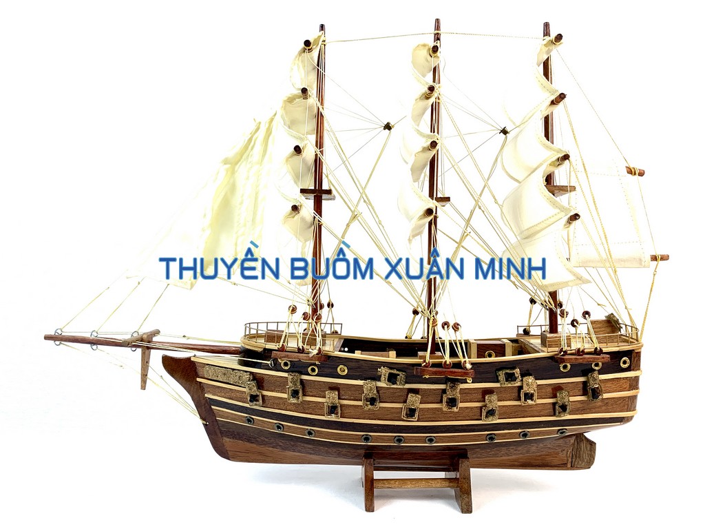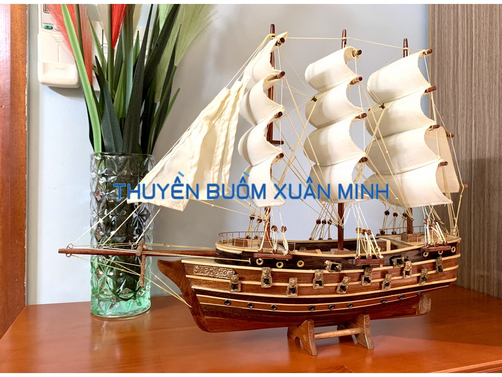 **MÔ HÌNH THUYỀN BUỒM GỖ PHONG THUỶ NAPOLEON (TÀU CHIẾN CỔ PHÁP) | LOẠI TIÊU CHUẨN - GỖ XOAN ĐÀO | THÂN 40cm