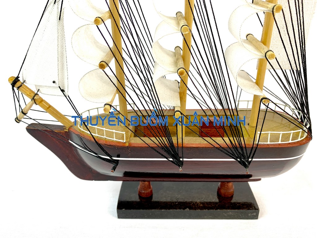 _ Mô hình được thiết kế tỉ mỉ, chắc chắn và được chạm khắc tinh xảo, bắt mắt người xem với chất liệu gỗ tự nhiên cùng với lớp sơn bóng PU không lo mối mọt trong thời gian dài. Hơn nữa các chi tiết, bộ phận như vỏ tàu, thân tàu, boong tàu, cột và cánh buồm, cũng như các trang trí khác.. được thiết kế phù hợp với tỷ lệ mô hình thuyền gỗ này.