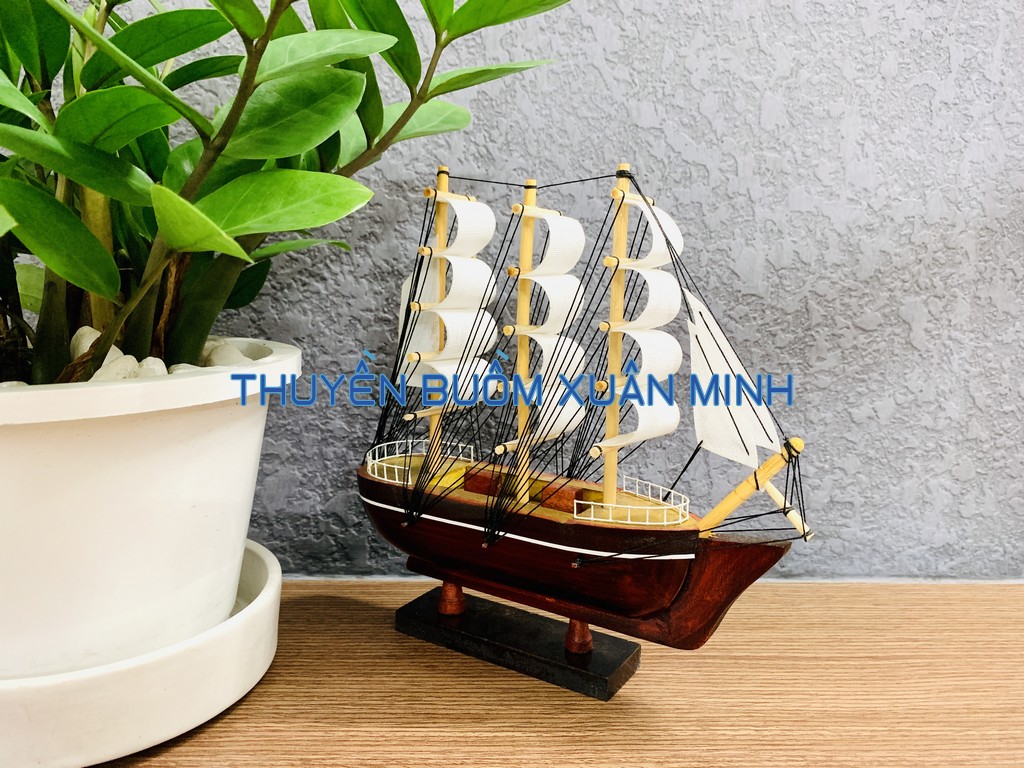 + 01 Mô Hình Thuyền Buồm Gỗ Phong Thuỷ - Size Nhỏ 20cm, chất liệu gỗ Thông và Quỷnh tự nhiên 100% như hình - xuất xứ Việt Nam.