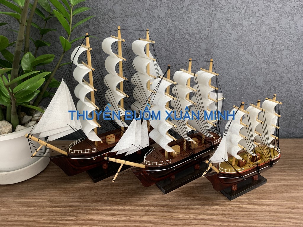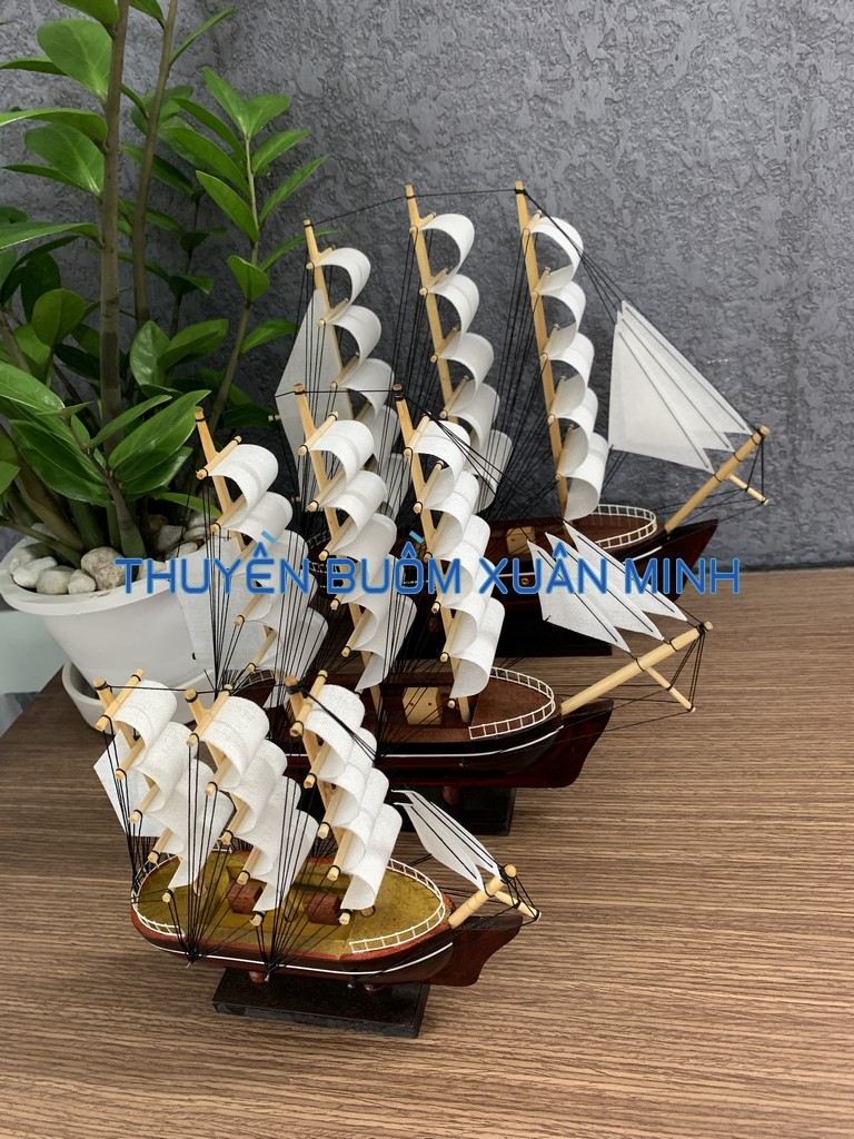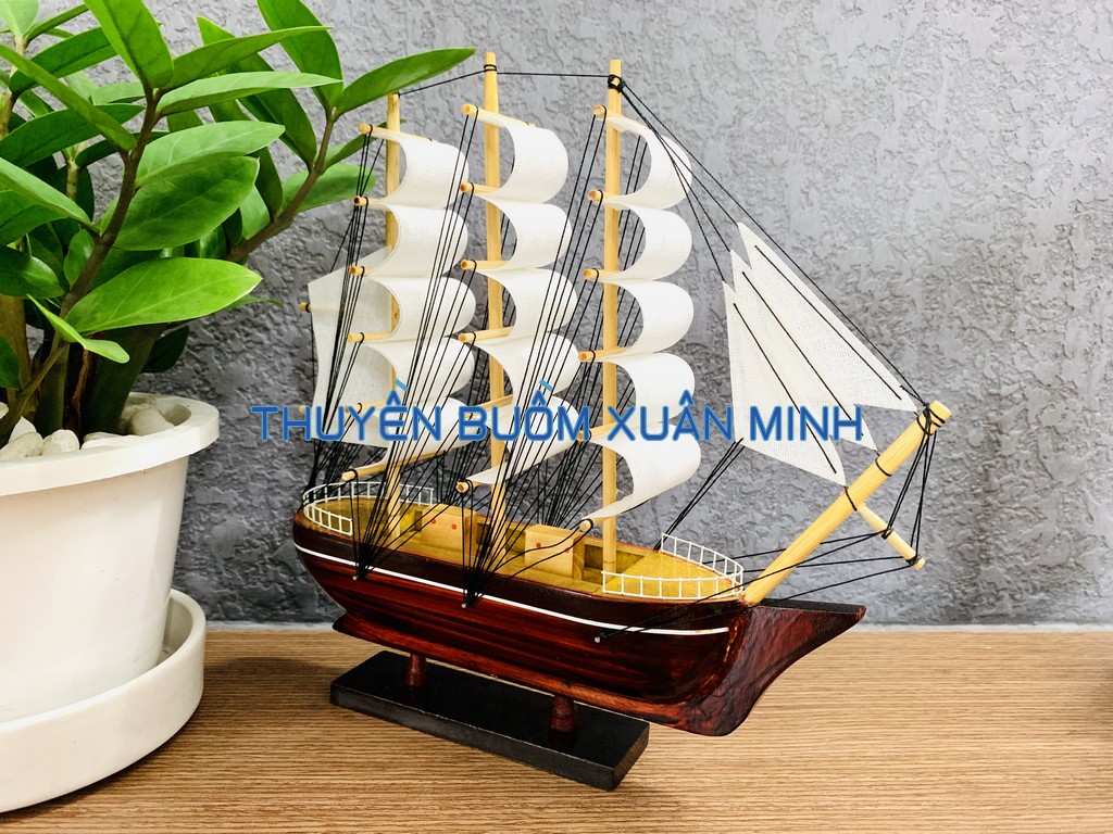 **MÔ HÌNH THUYỀN BUỒM GỖ PHONG THUỶ | SIZE TRUNG 26cm