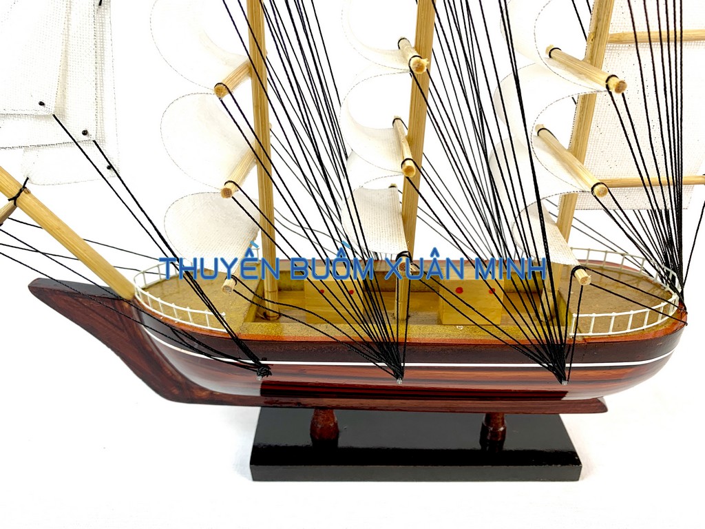 _ Mô hình được thiết kế tỉ mỉ, chắc chắn và được chạm khắc tinh xảo, bắt mắt người xem với chất liệu gỗ tự nhiên cùng với lớp sơn bóng PU không lo mối mọt trong thời gian dài. Hơn nữa các chi tiết, bộ phận như vỏ tàu, thân tàu, boong tàu, cột và cánh buồm, cũng như các trang trí khác.. được thiết kế phù hợp với tỷ lệ mô hình thuyền gỗ này.