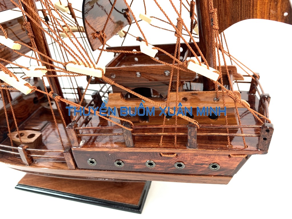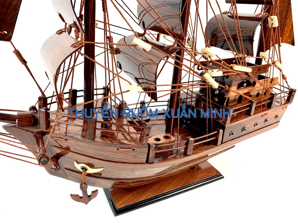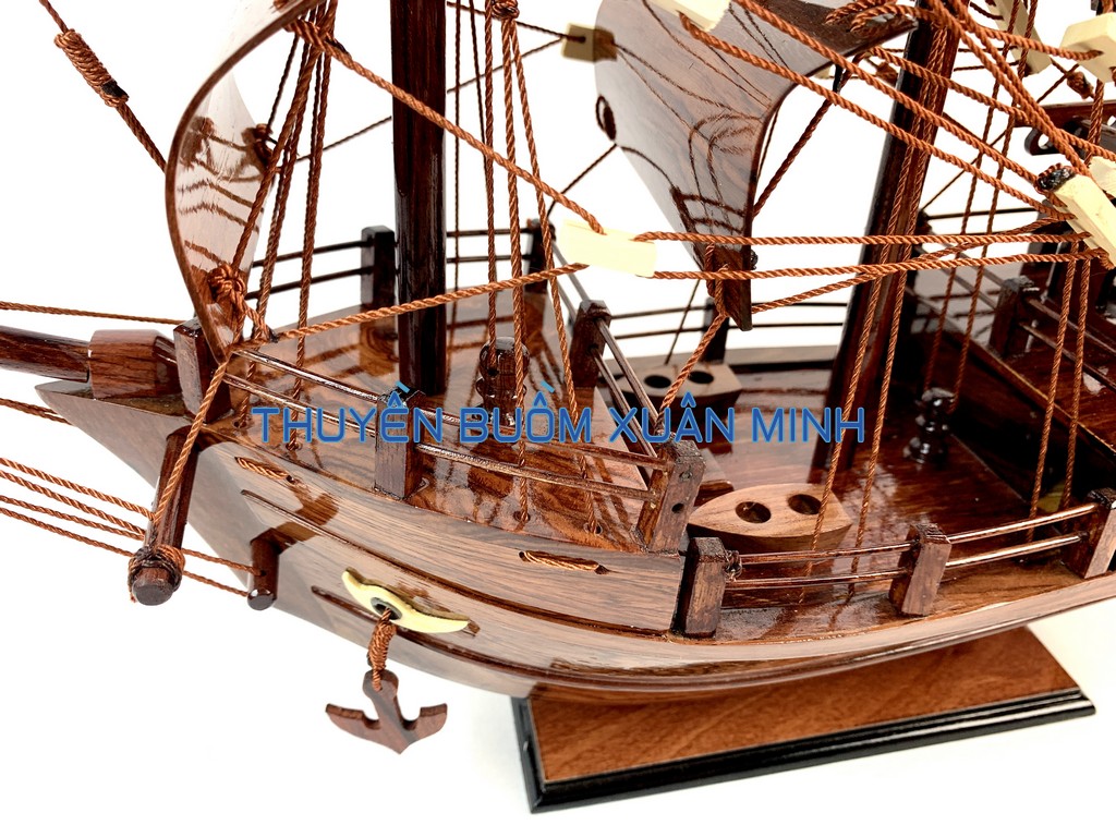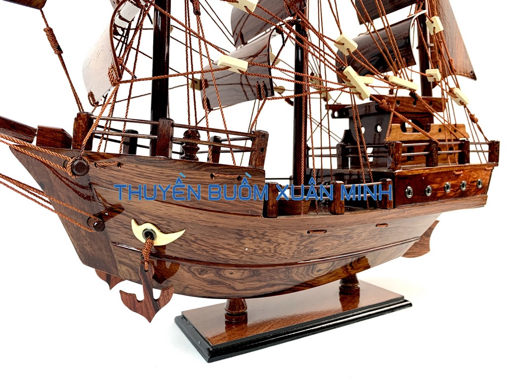 _ Mô hình được thiết kế tỉ mỉ, chắc chắn và được chạm khắc tinh xảo, bắt mắt người xem với chất liệu gỗ tự nhiên cùng với lớp sơn bóng PU không lo mối mọt trong thời gian dài. Hơn nữa các chi tiết, bộ phận như vỏ tàu, thân tàu, boong tàu, cột và cánh buồm, cũng như các trang trí khác.. được thiết kế phù hợp với tỷ lệ mô hình thuyền gỗ này.
