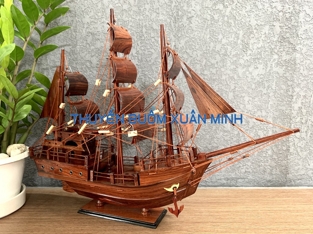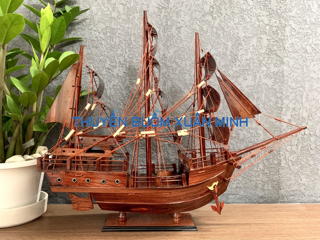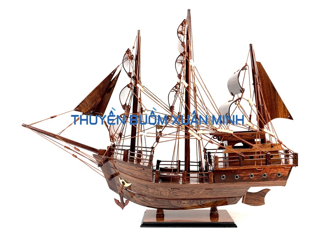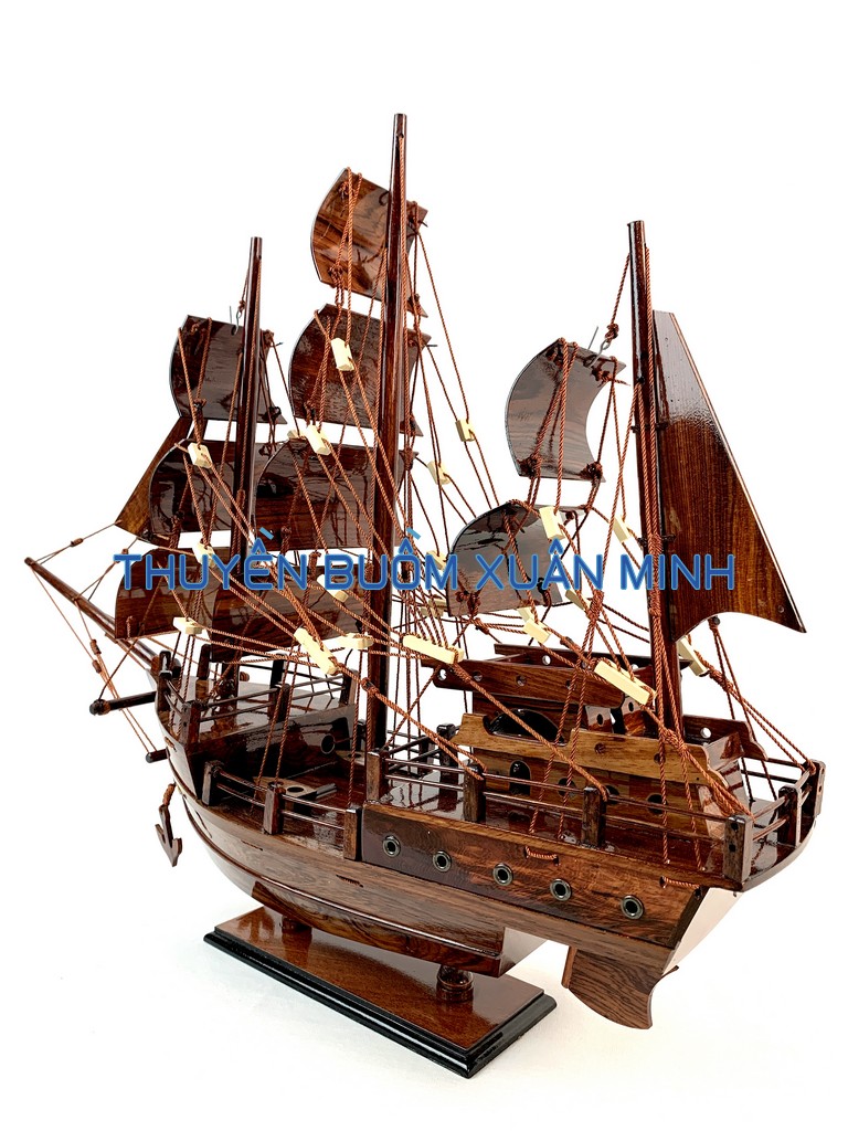 _ Mô hình được thiết kế tỉ mỉ, chắc chắn và được chạm khắc tinh xảo, bắt mắt người xem với chất liệu gỗ tự nhiên cùng với lớp sơn bóng PU không lo mối mọt trong thời gian dài. Hơn nữa các chi tiết, bộ phận như vỏ tàu, thân tàu, boong tàu, cột và cánh buồm, cũng như các trang trí khác.. được thiết kế phù hợp với tỷ lệ mô hình thuyền gỗ này.