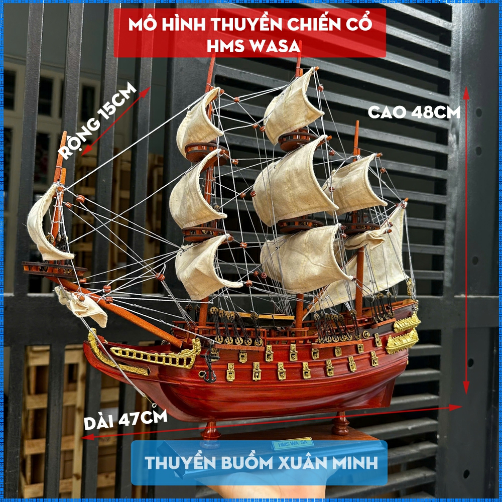 **MÔ HÌNH THUYỀN CHIẾN HẠM HOÀNG GIA HMS WASA (TÀU CỔ CHIẾN HẠM THUỴ ĐIỂN) | HÀNG XUẤT KHẨU - GỖ CĂM XE | DÀI 47cm
